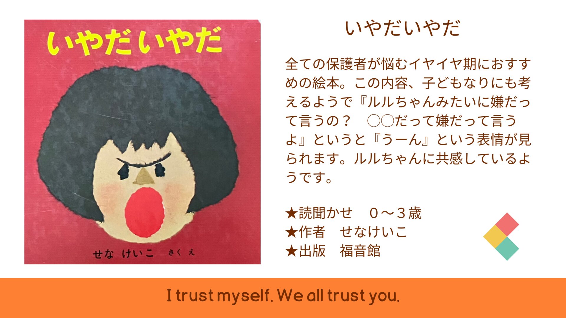 2024.05.20 絵本紹介 『いやだいやだ』保育士パパ絵本紹介 保育士パパおすすめの絵本を紹介! お月さまの登場する絵本を6冊紹介します。 毎週月曜日に更新しますのでお楽しみにお待ちください。 一覧へ戻る