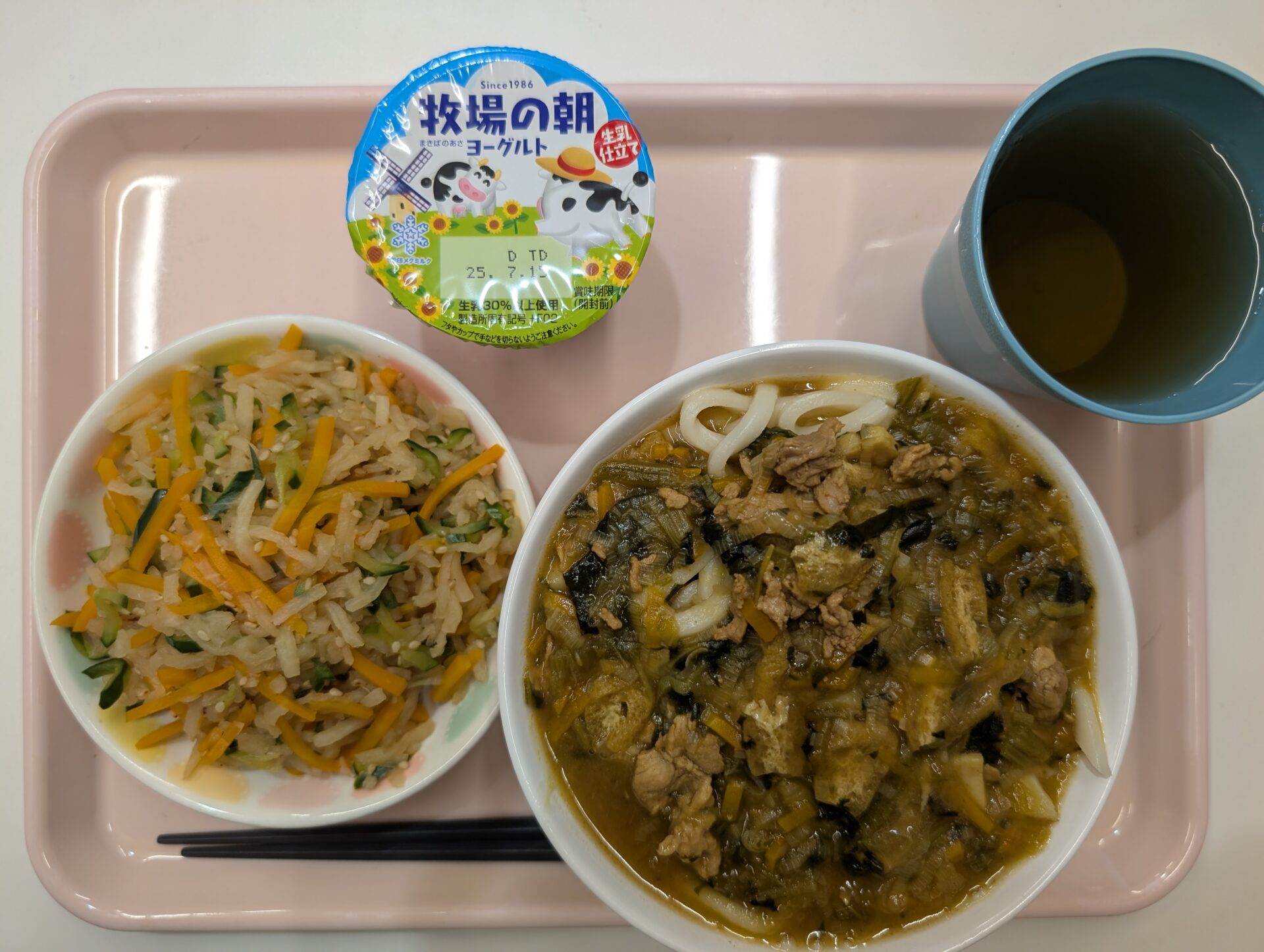 2025.07.09 今日の給食 7月9日の給食 今日のメニューはカレーうどんでした! 子ども達の好きなカレーとうどんのコラボだけあって、あっという間の完食でした😋 デザートにヨーグルトもついて、大満足メニューでした✨ 一覧へ戻る