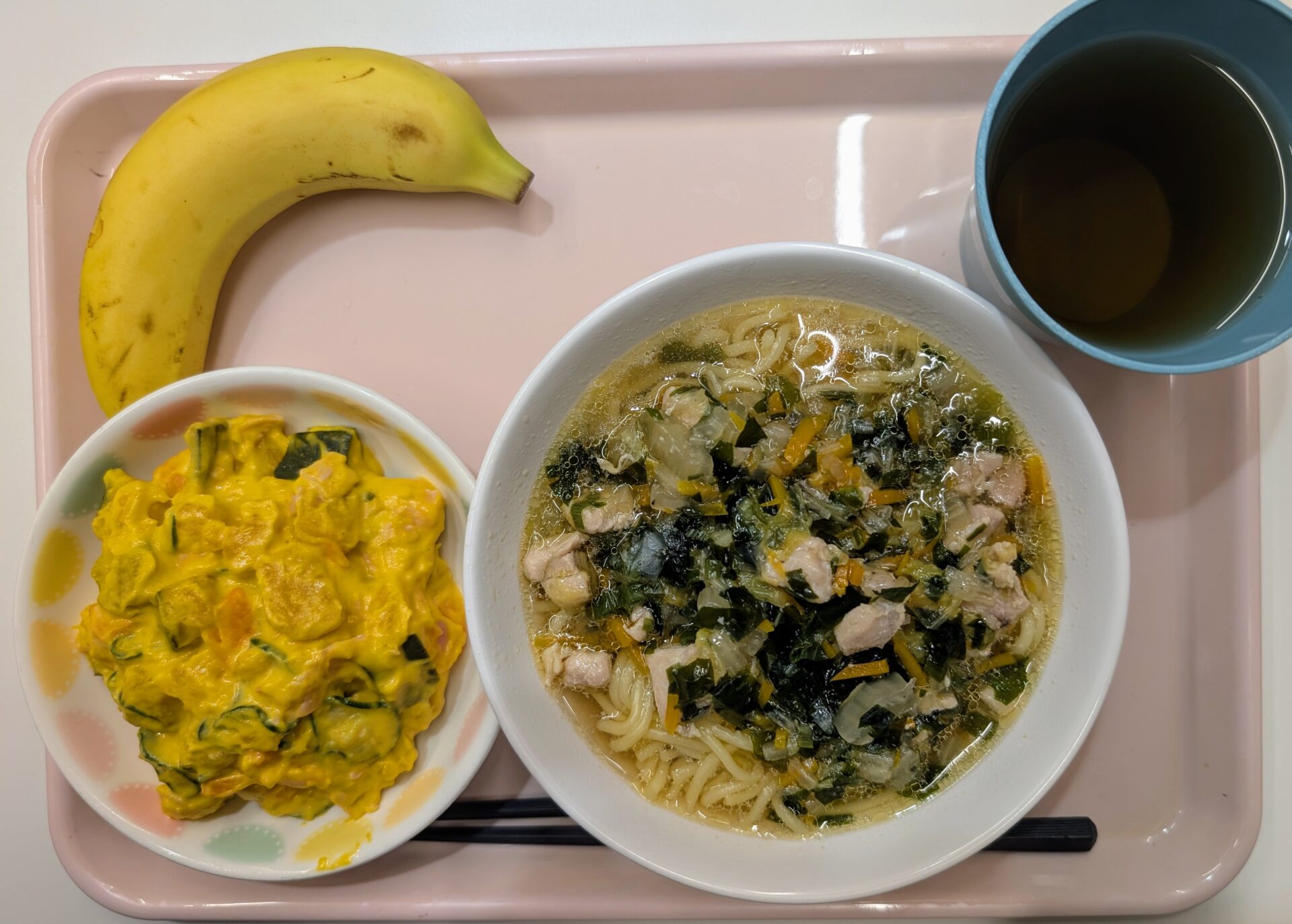 五目ラーメンに、かぼちゃサラダ、バナナというメニューでした😋