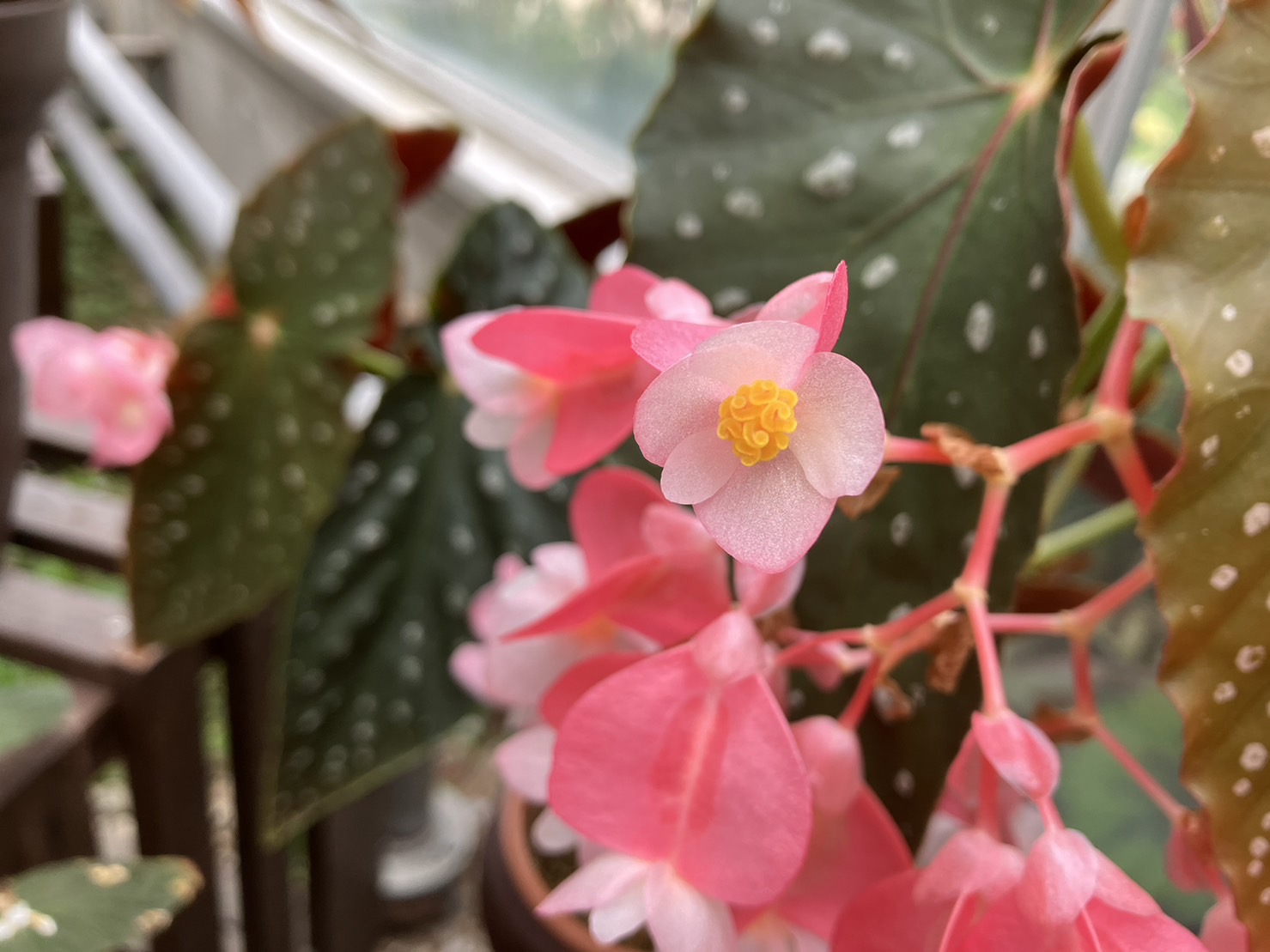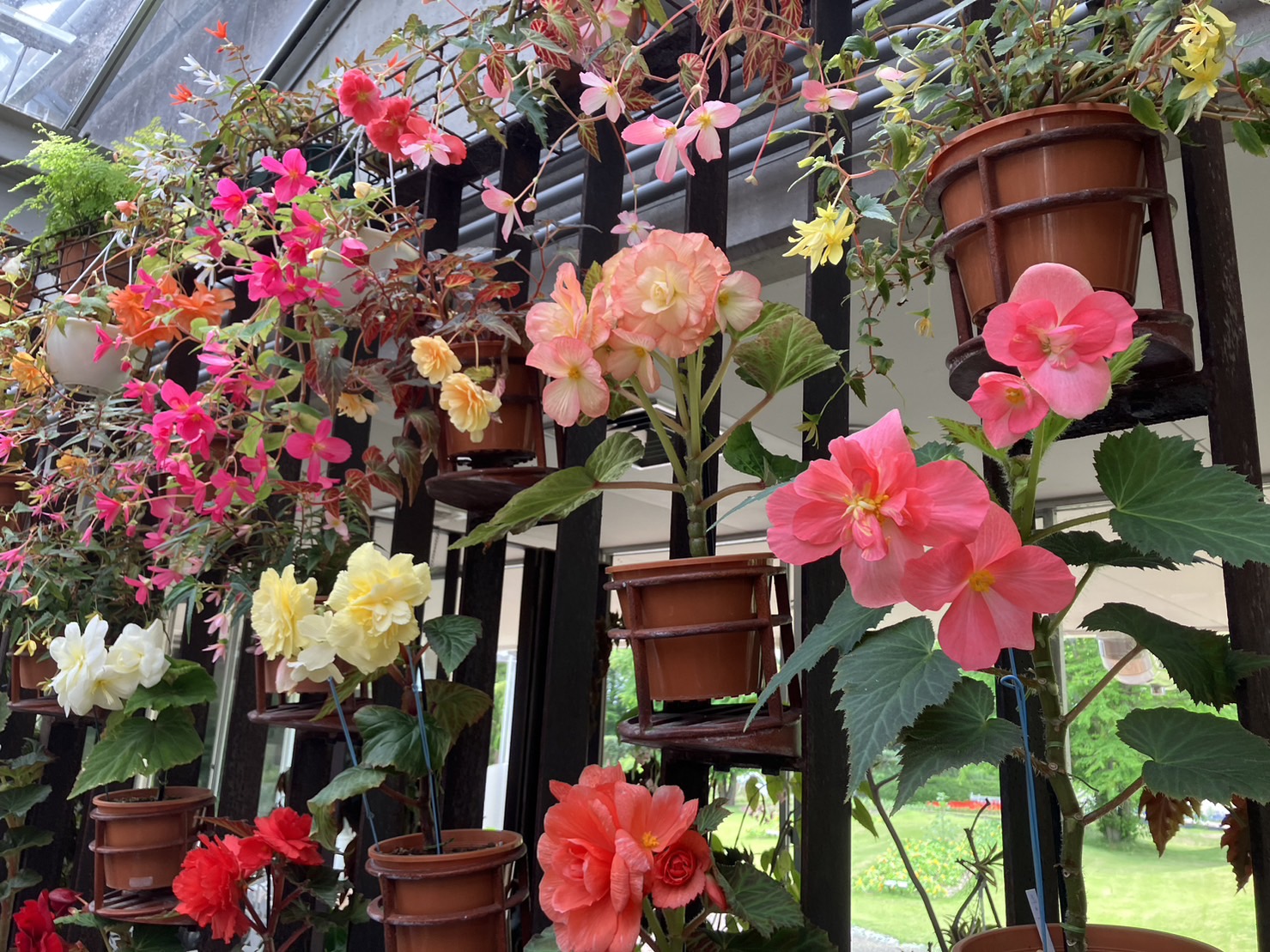 この花は、ベゴニアです。花屋さんにいくと小さな花が一般的ですが、サッカーボールくらいの大きさがあります。『これがベゴニア!?』と驚愕しました。ベゴニアも今が最盛期です。