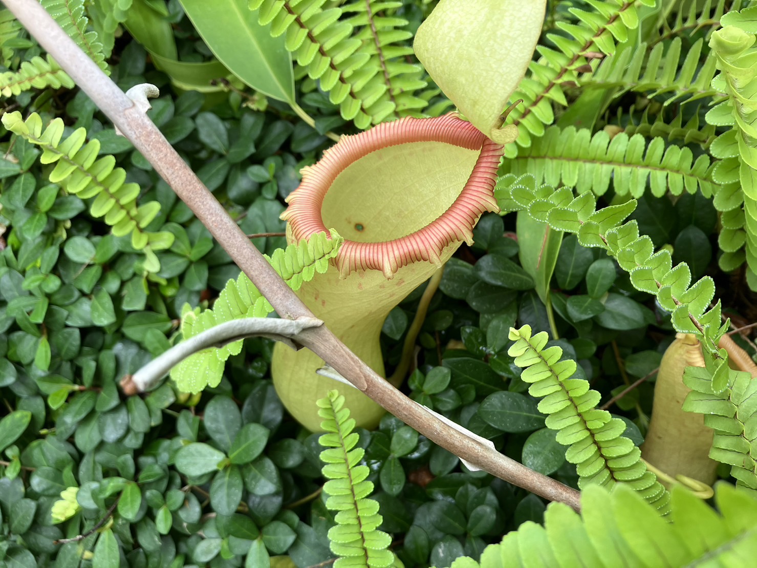 それから大小様々、たくさんのウツボカズラ(食虫植物)が見ごたえあります。ぬるぬるしてそうな不思議な質感です。