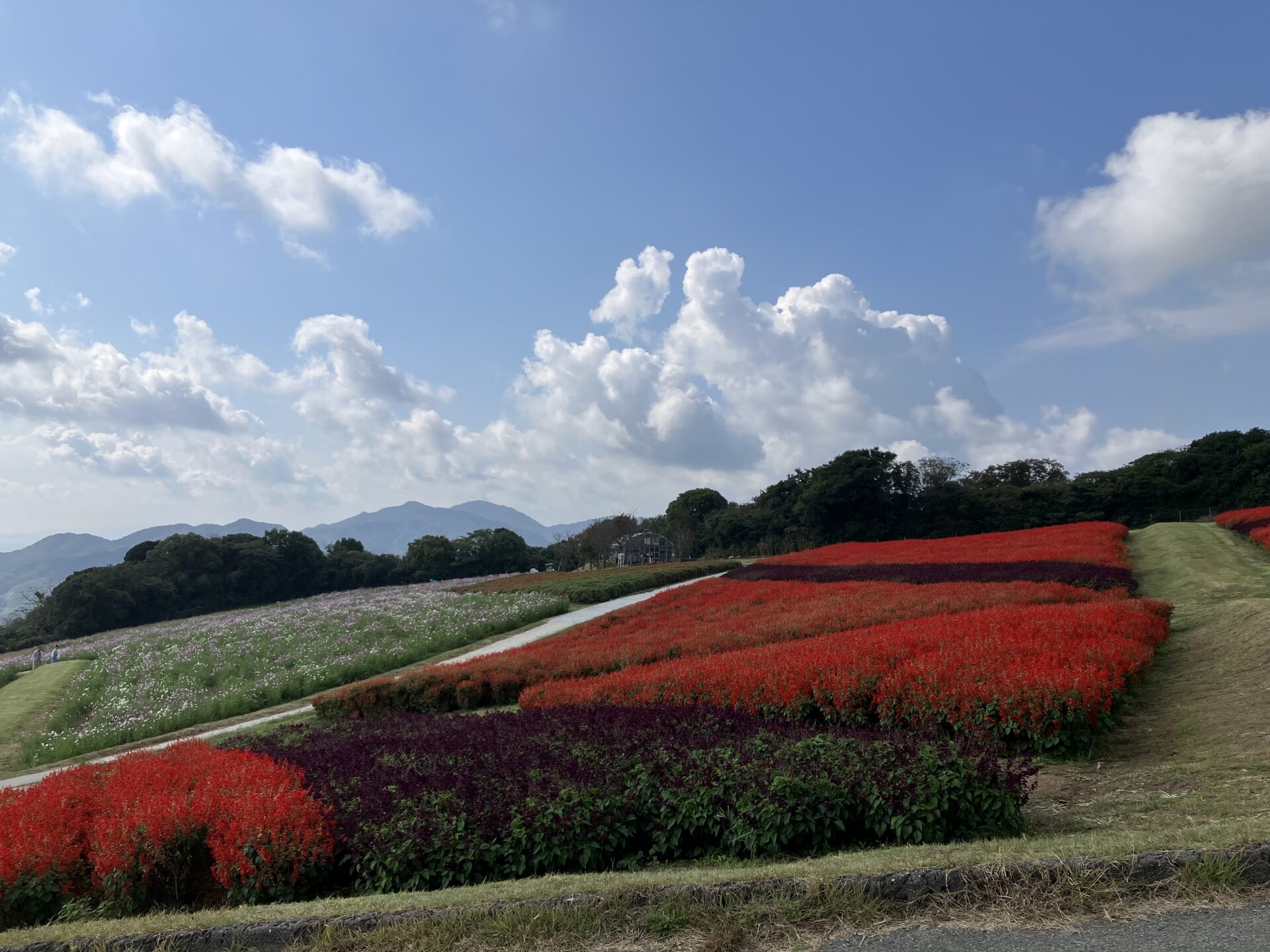 さて、兵庫県立あわじ花さじきにて、一面に広がるコスモス、ブルーサルビア、サルビアがとてもきれいな見頃ですのでご紹介します。