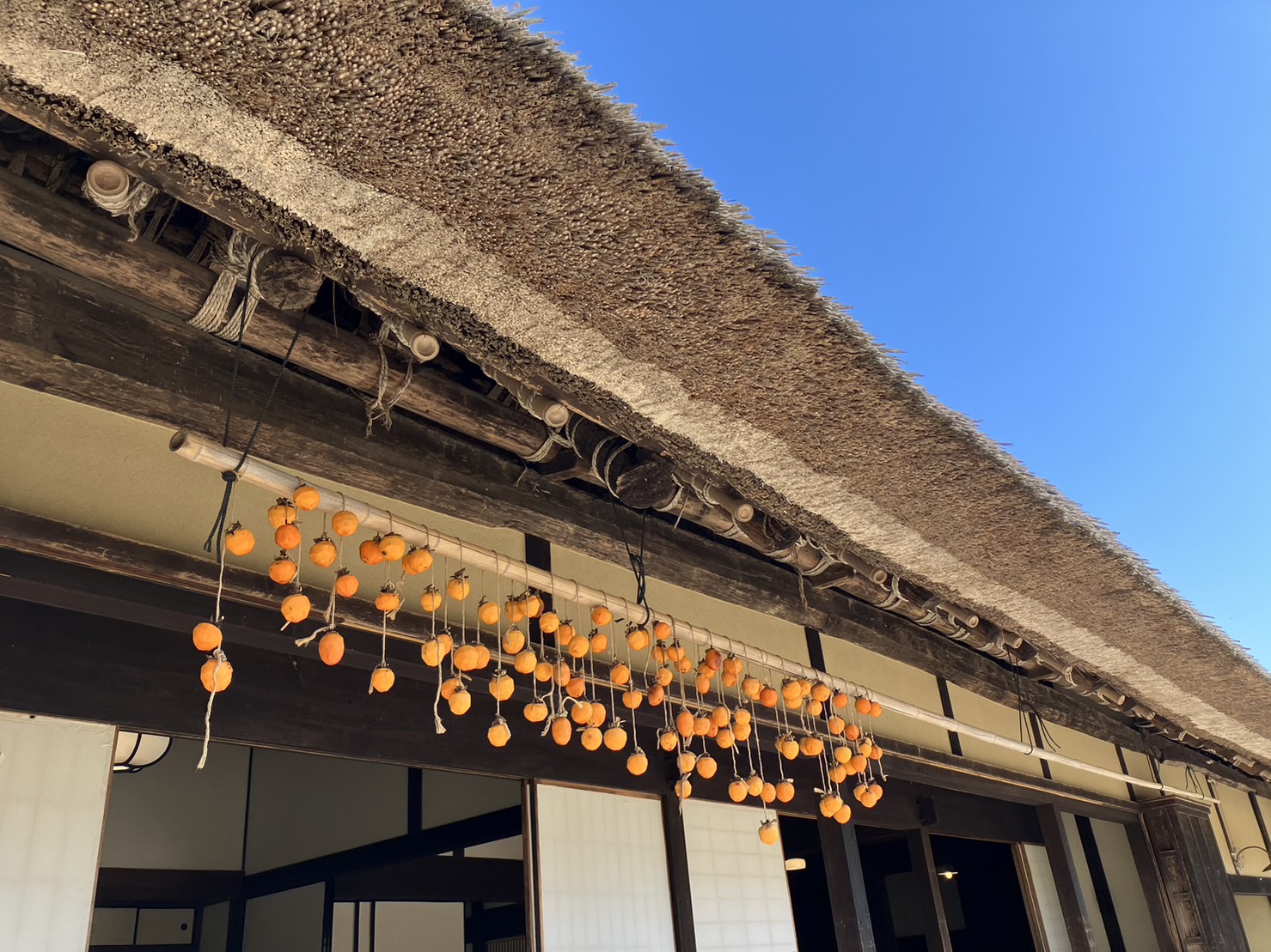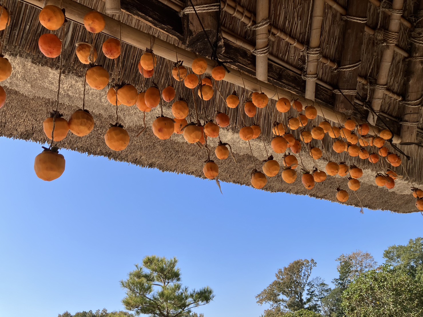 園で干し柿をした後に出かけたので、里山の風景に干し柿が吊るしてある様子を子どもたちにも見せたくて写真でを撮ってきました。