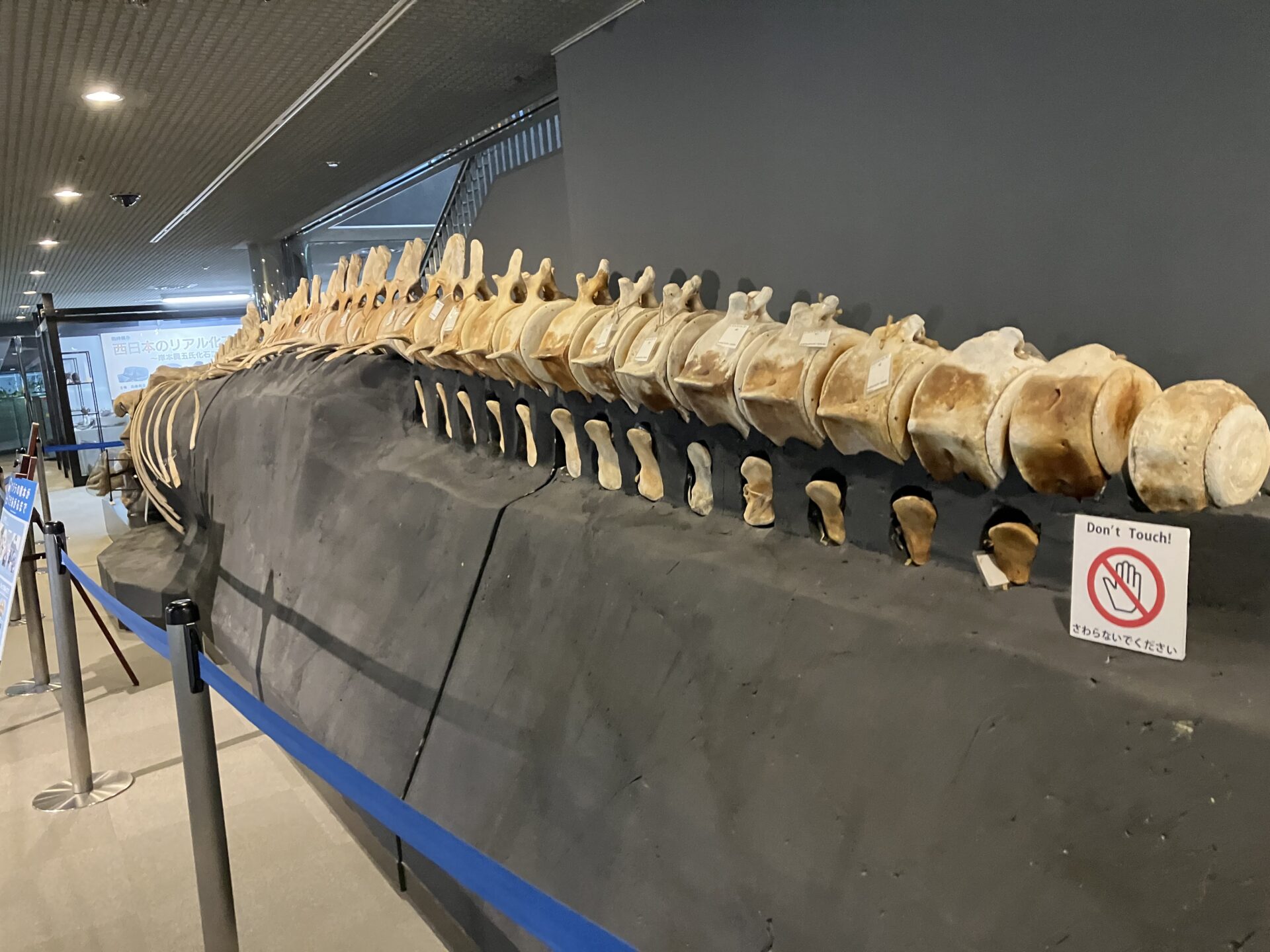 2001年に大阪湾に迷い込んだくじらの標本です。くじらの標本がどのようにしてできるのか、ぜひ現地に会いに行っていただければと思います。(ちなみにこれはシロナガスクジラです。)