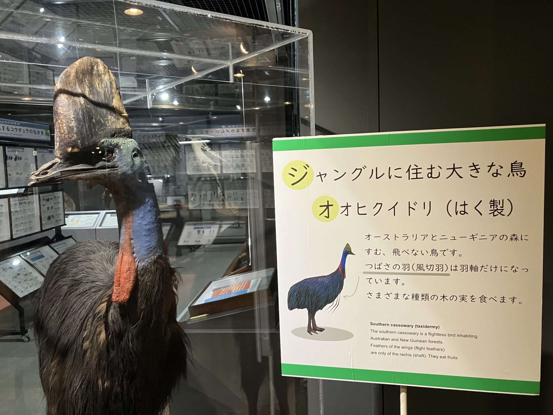 個人的にはヒクイドリの剥製もおもしろかったです。それからチョウの標本はキラキラかわいいし飾り方もただ並べるだけじゃなくて工夫していることを感じました。
