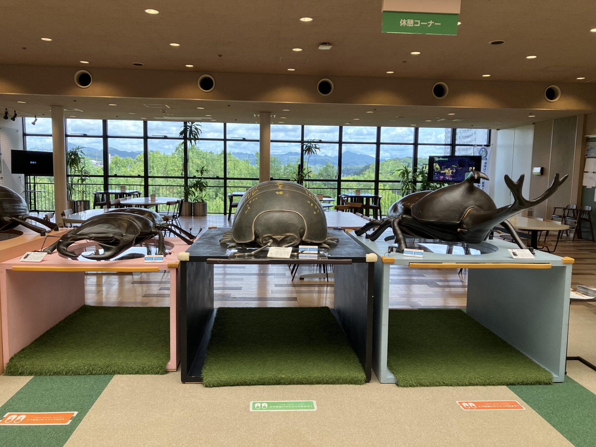 最後はエレベーターで4階へ行くとサロン・図書コーナーがあって、大きな昆虫のレプリカも展示してあります。下から覗きこめてこどもたちも楽しいです。