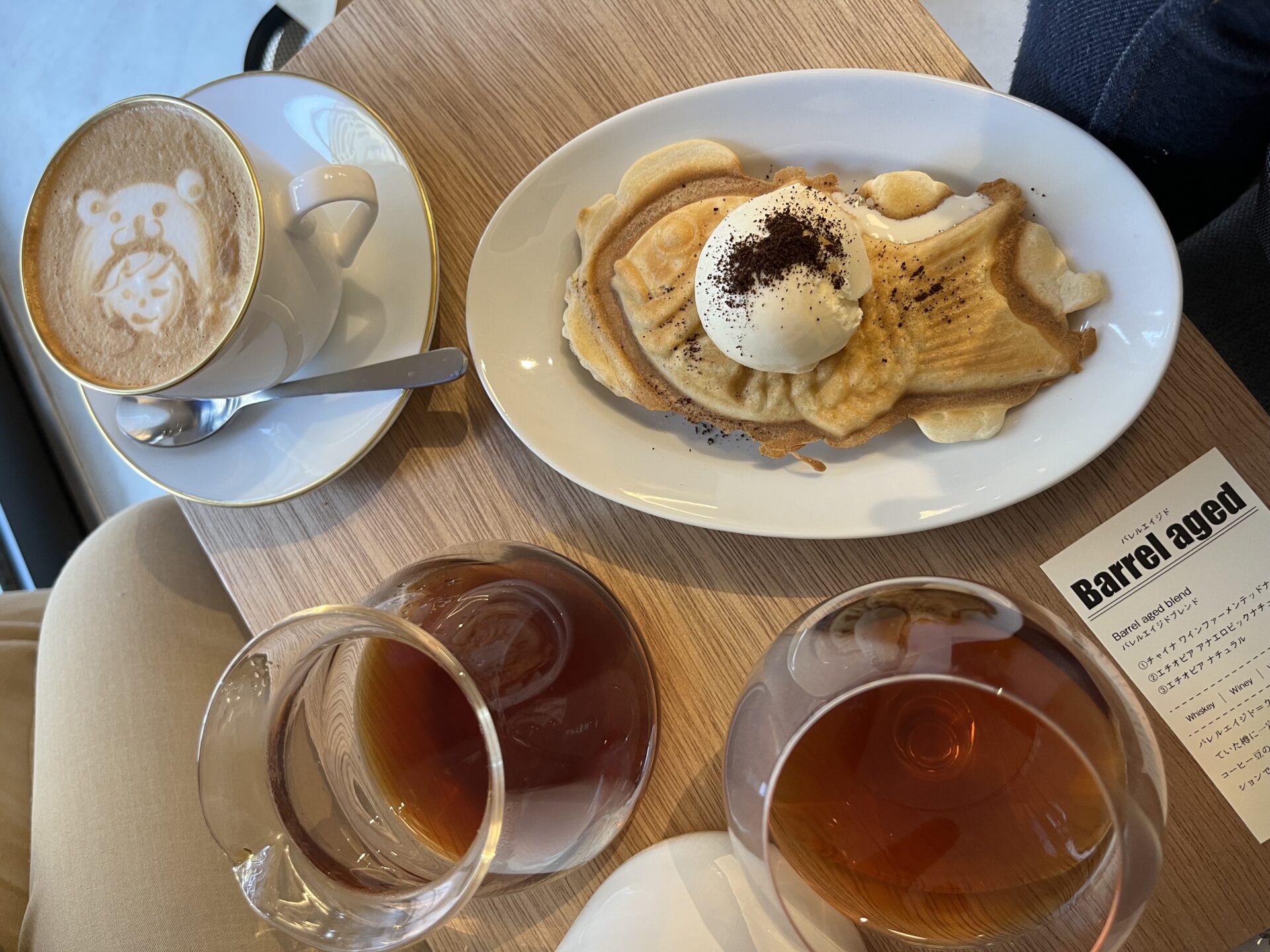 摩耶山での疲れを癒そうと北野焙煎場で1杯900円のウイスキー樽で香り付けしたコーヒーとパリパリのたい焼きをいただきました。私は酸味が強いのは苦手なのですが、香りがよく酸味がありながらすっきりとしたフルーティーな味で美味しかったです。(写真はありませんがコーヒーを注文するとミニたい焼きがついてきました✨)
