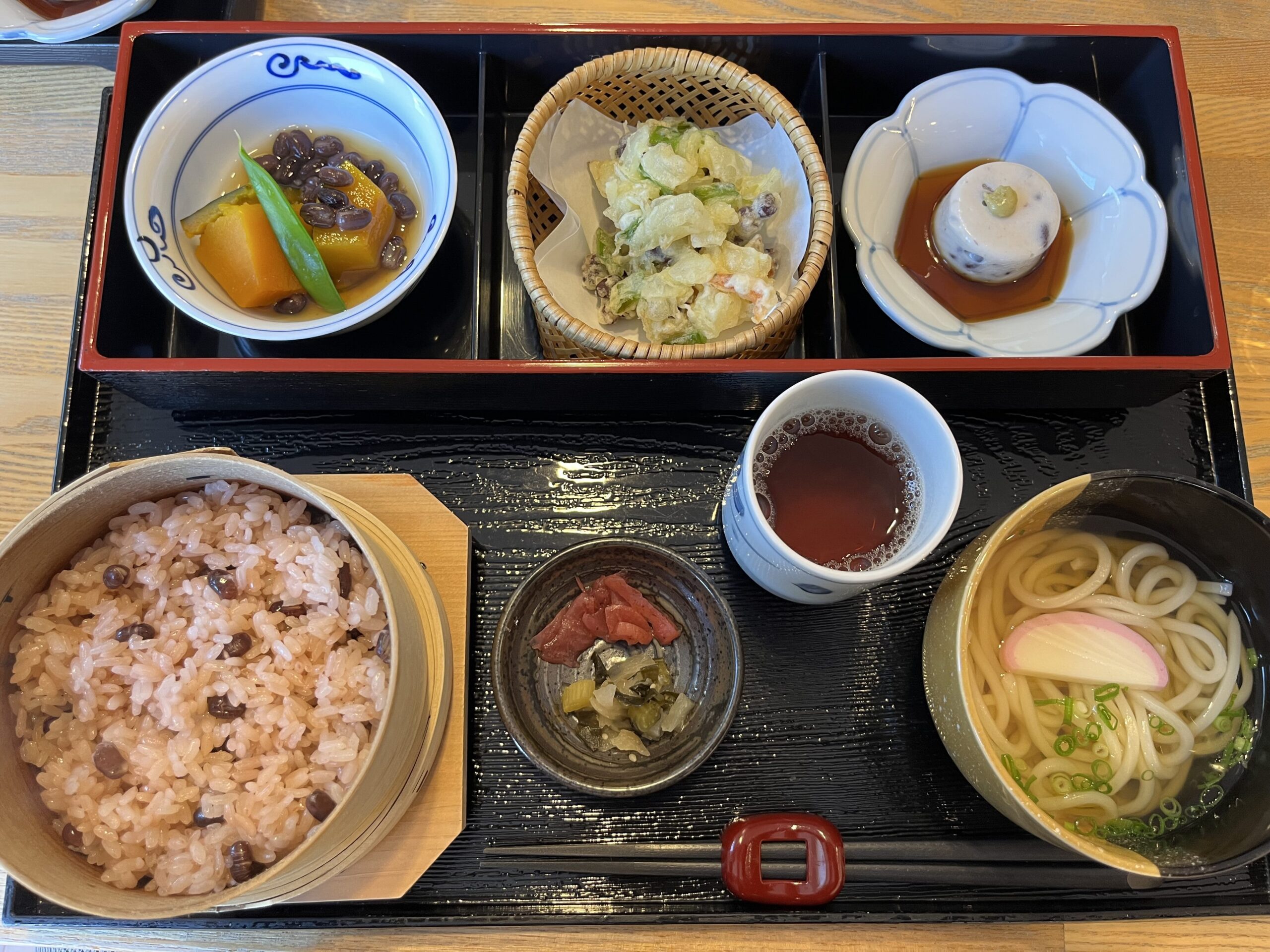 それから幼児でも楽しめる、小豆で遊ぶ小豆クラフトのコーナーやあずき博士になれるクイズ(認定証発行)、御座候を焼く職人になる顔はめパネルもあります。レストランでは全てに小豆が入った小豆御膳をいただけます。(デザートには小豆ソフトと小豆茶)