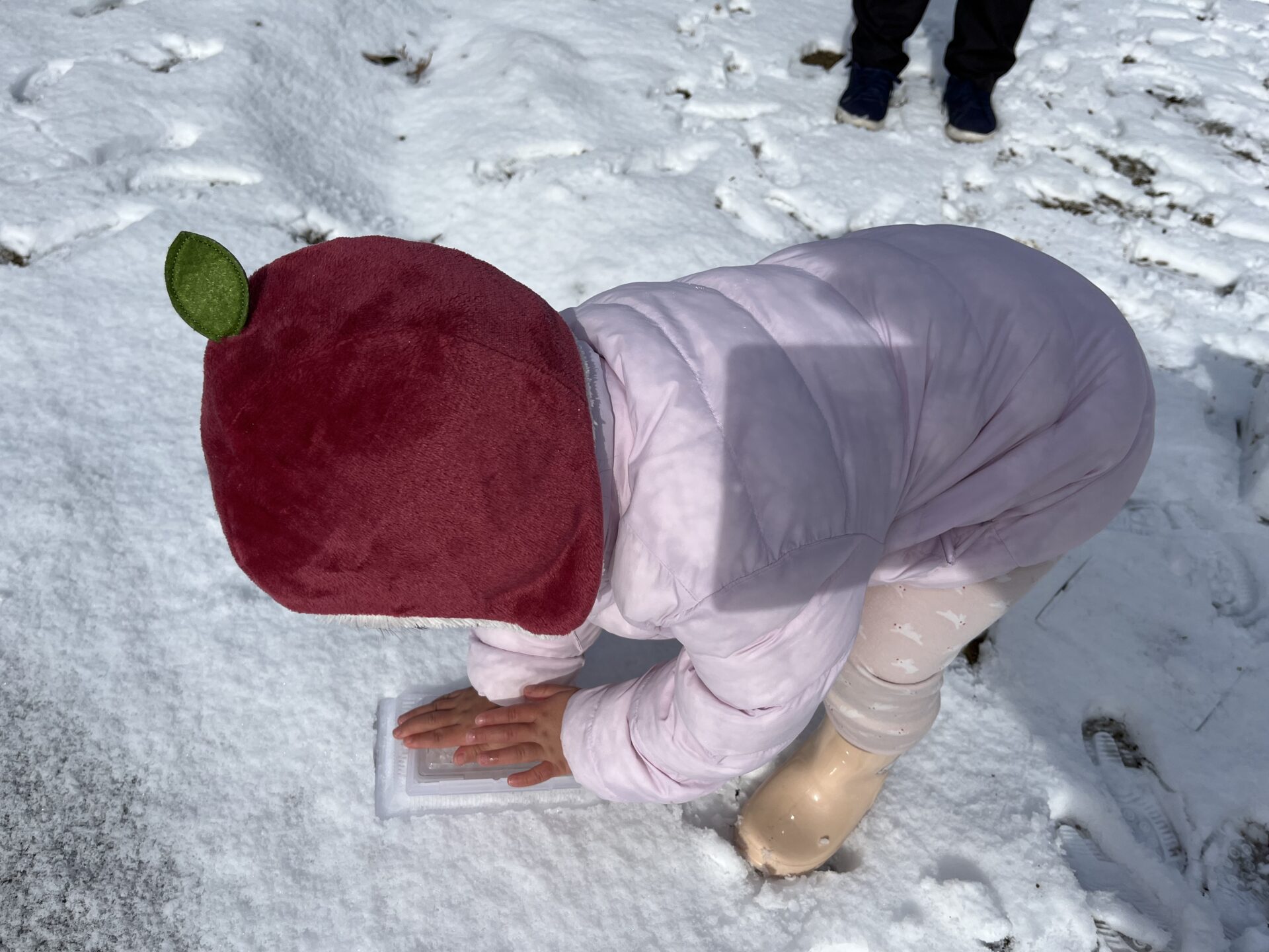そして、フタも雪の上にスタンプして遊びました。