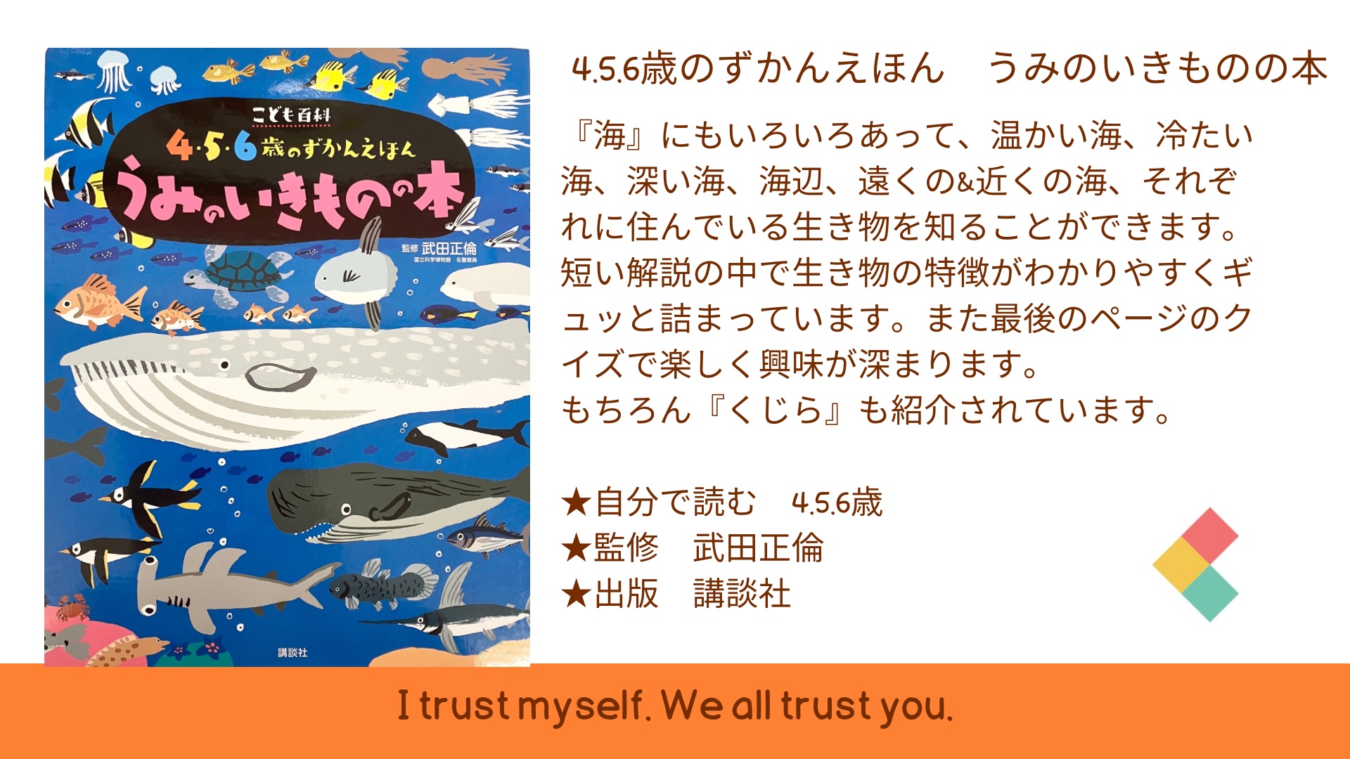 2024.06.17 絵本紹介 『4・5・6歳のずかんえほん うみのいきものの本』保育士パパの絵本紹介(くじらシリーズ④) 保育士パパオススメの絵本を紹介! くじらが登場する絵本を5冊紹介します。 毎週月曜日に更新しますのでお楽しみにお待ちください。 一覧へ戻る