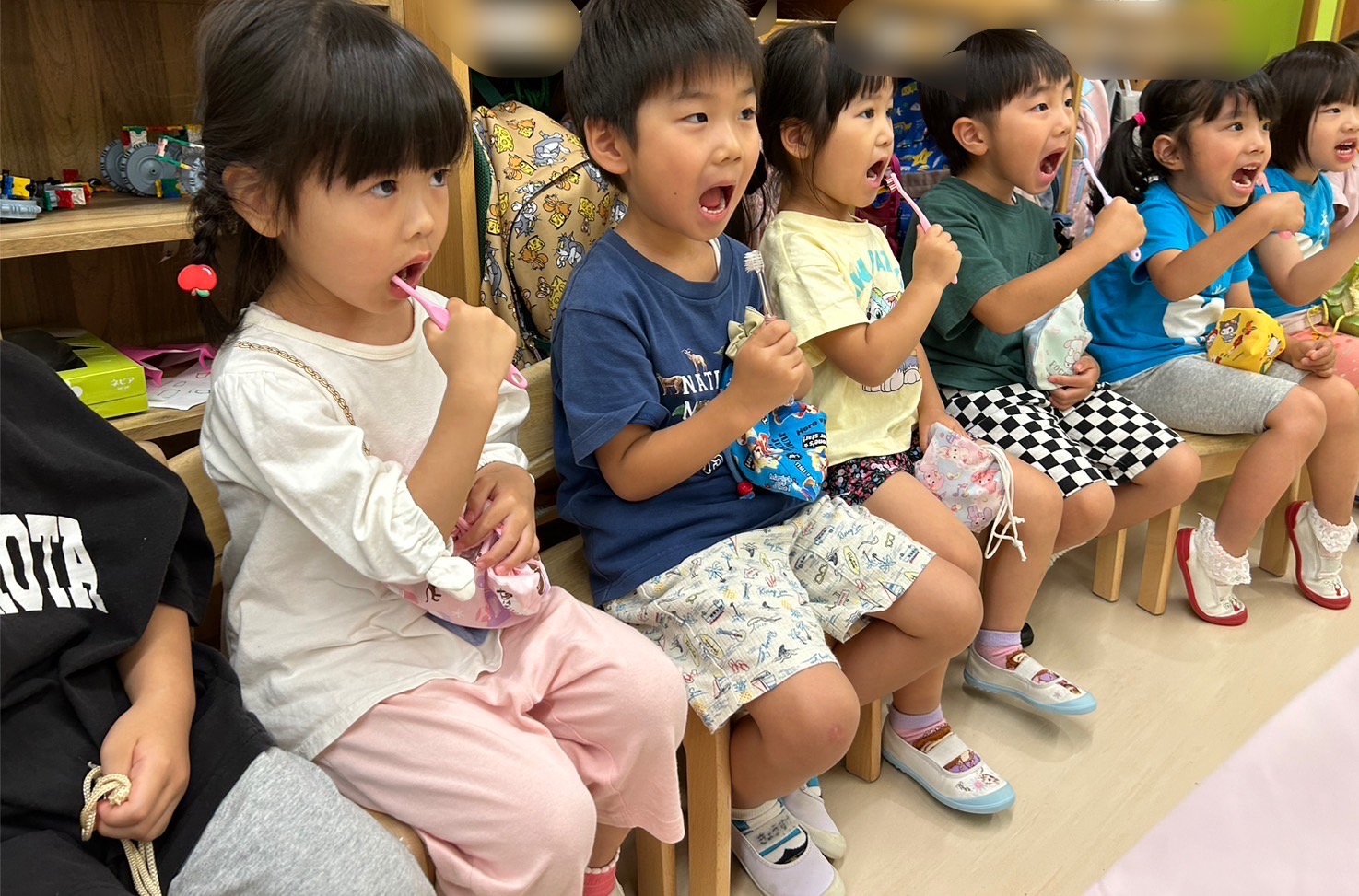 その後、にじ・そら・くじら組の子どもたちは各クラスに戻って実際に歯磨き指導をしていただきました。