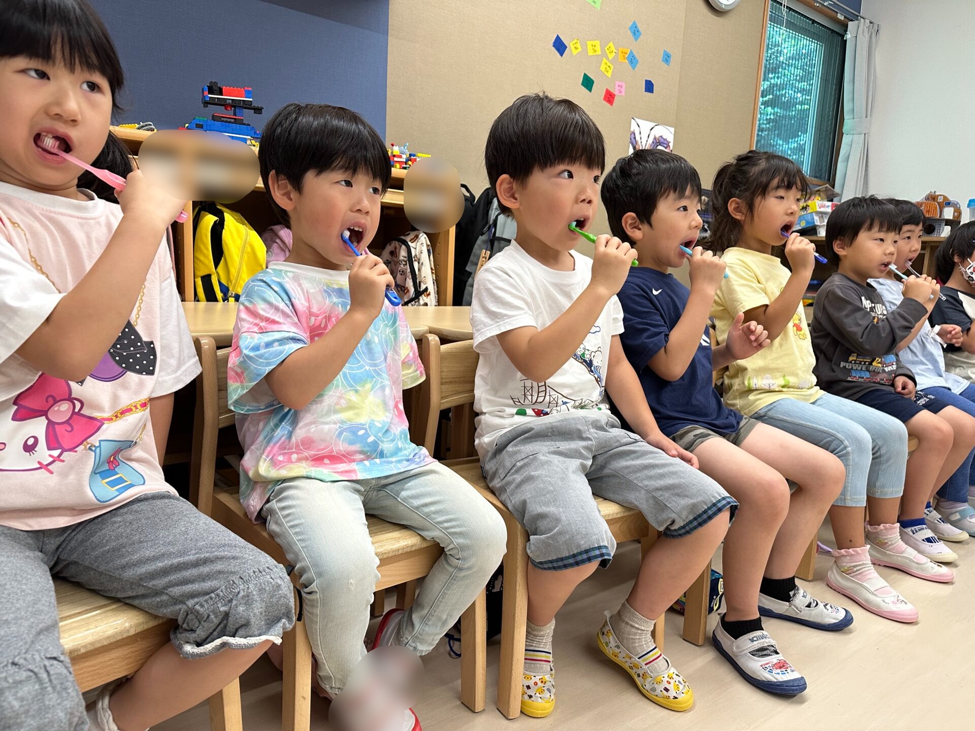 給食後の歯磨きの時にも、「奥歯からね!」「上手に磨けているよ!」と友だちと声を掛け合いながら教えてもらったことをさっそく実践していました🪥✨