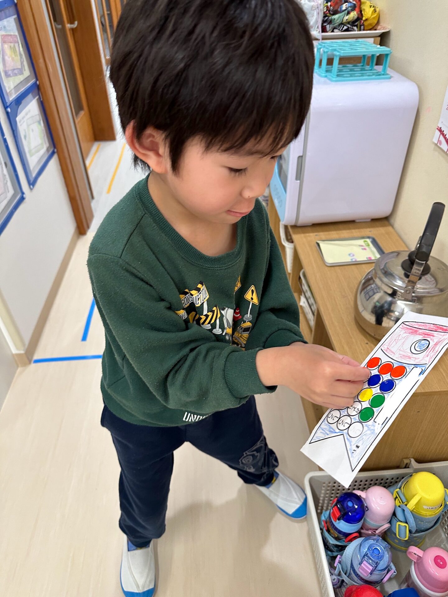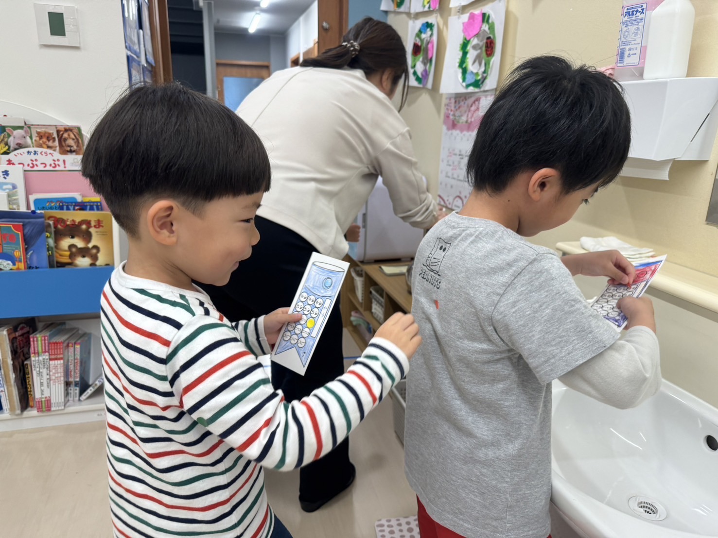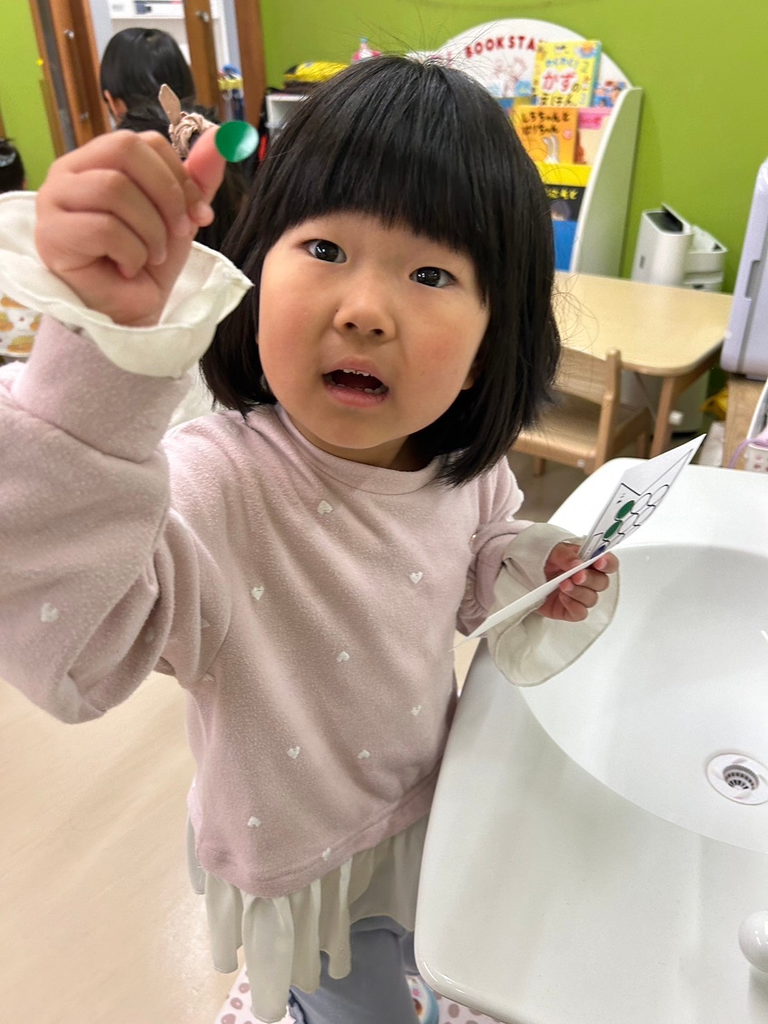 集会の後、3.4.5歳クラスはシール探しをしました!