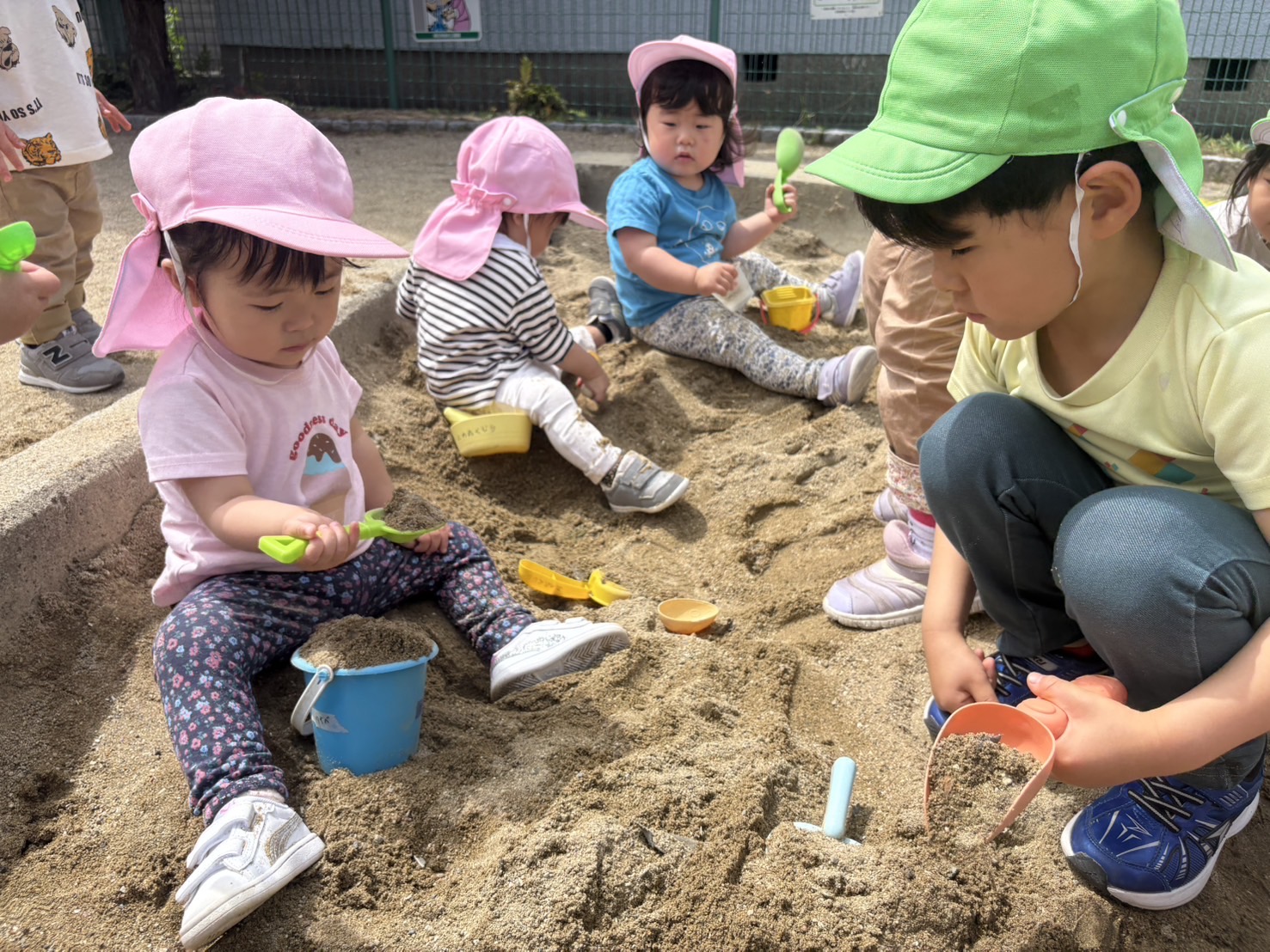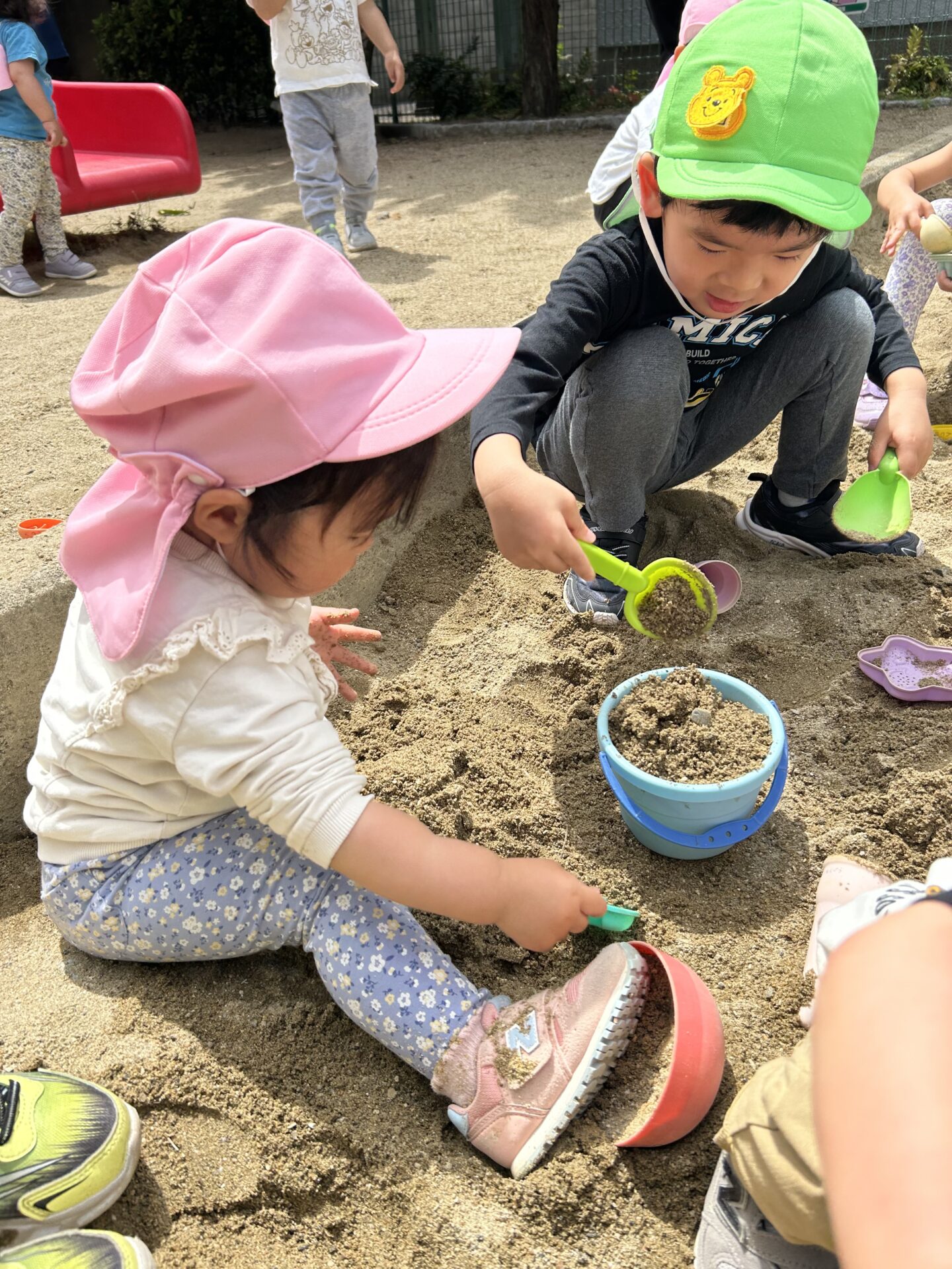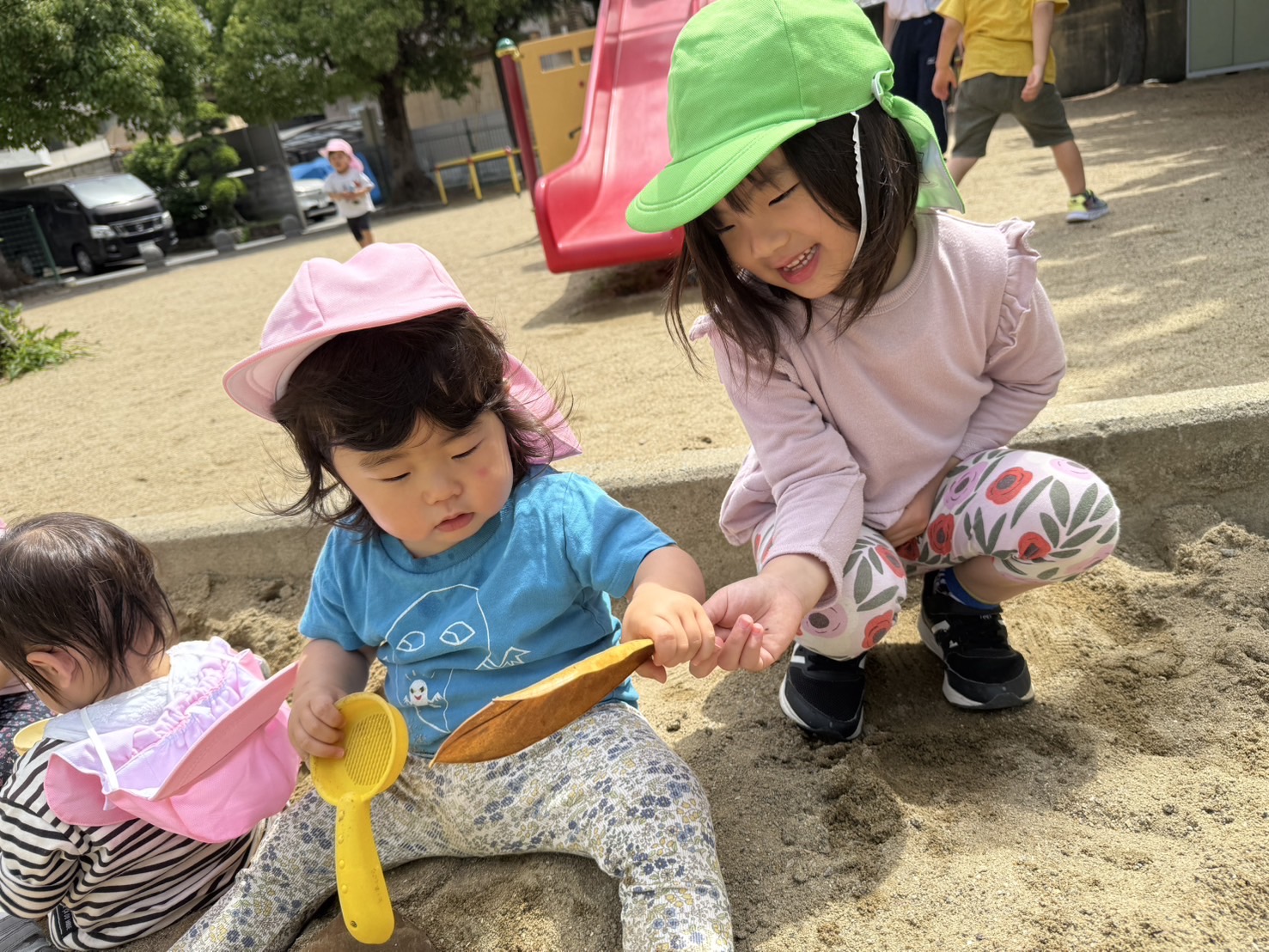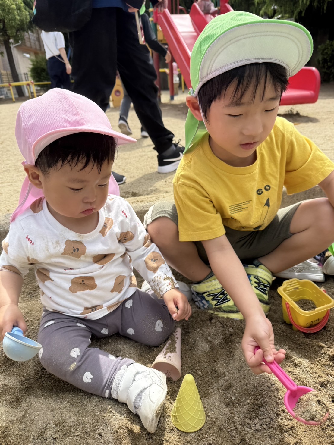 公園では、楽しく一緒に砂遊びをしました。