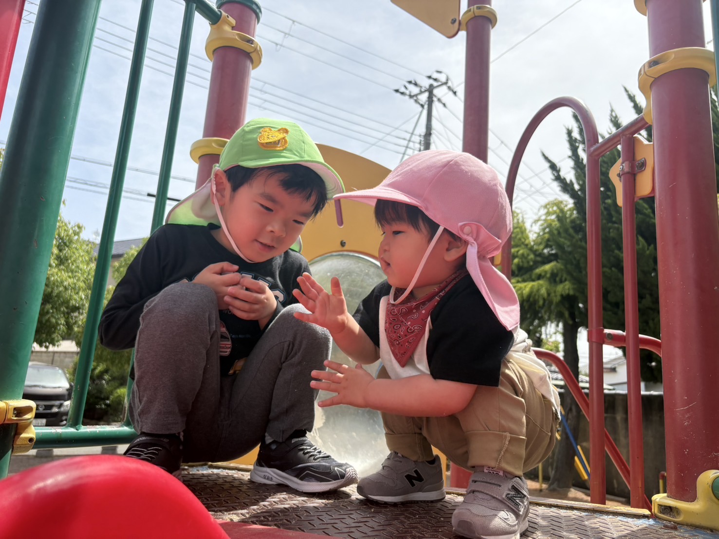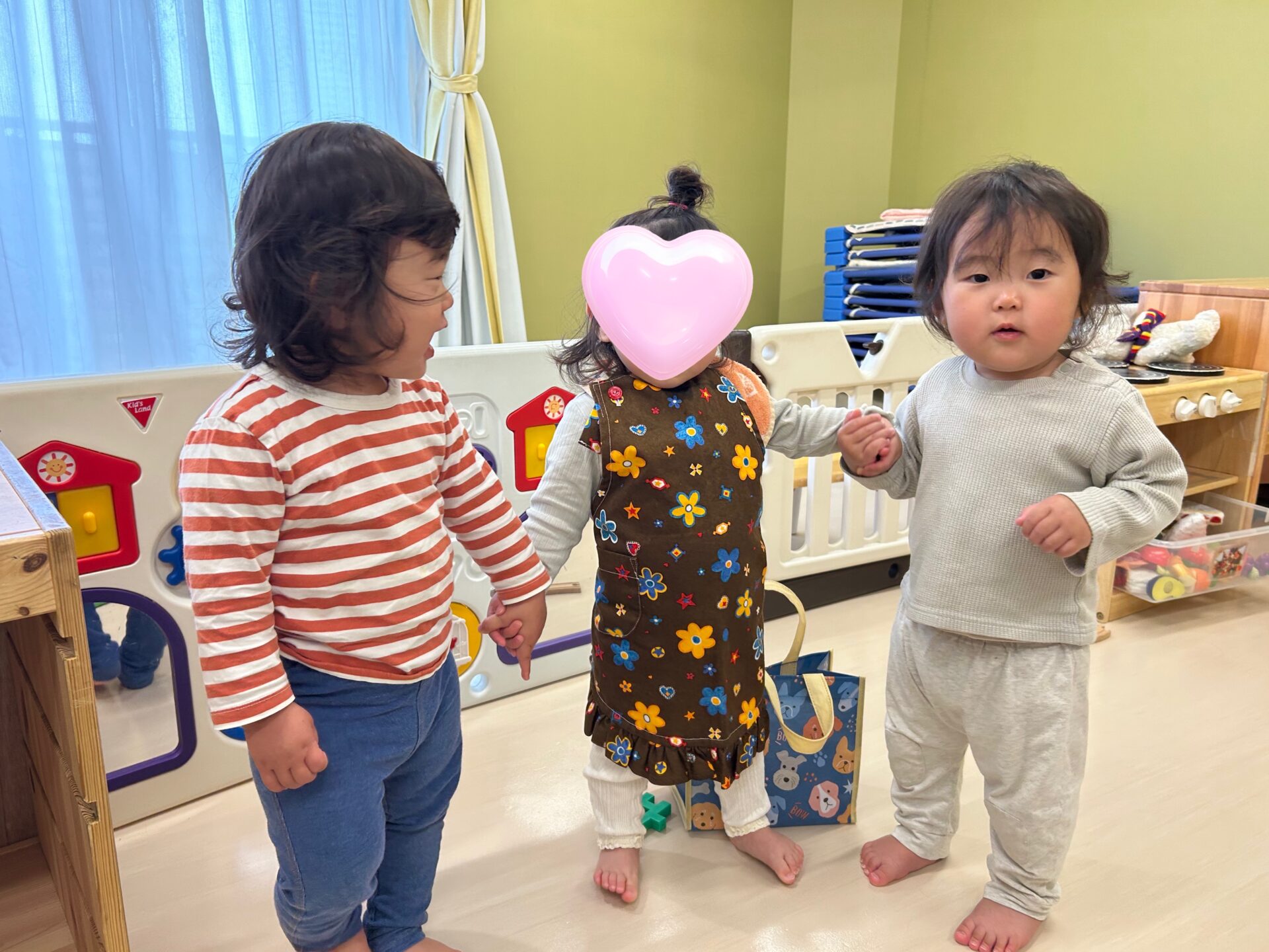 最近は友だちと手をつないだり、友だちのしていることを真似したり、