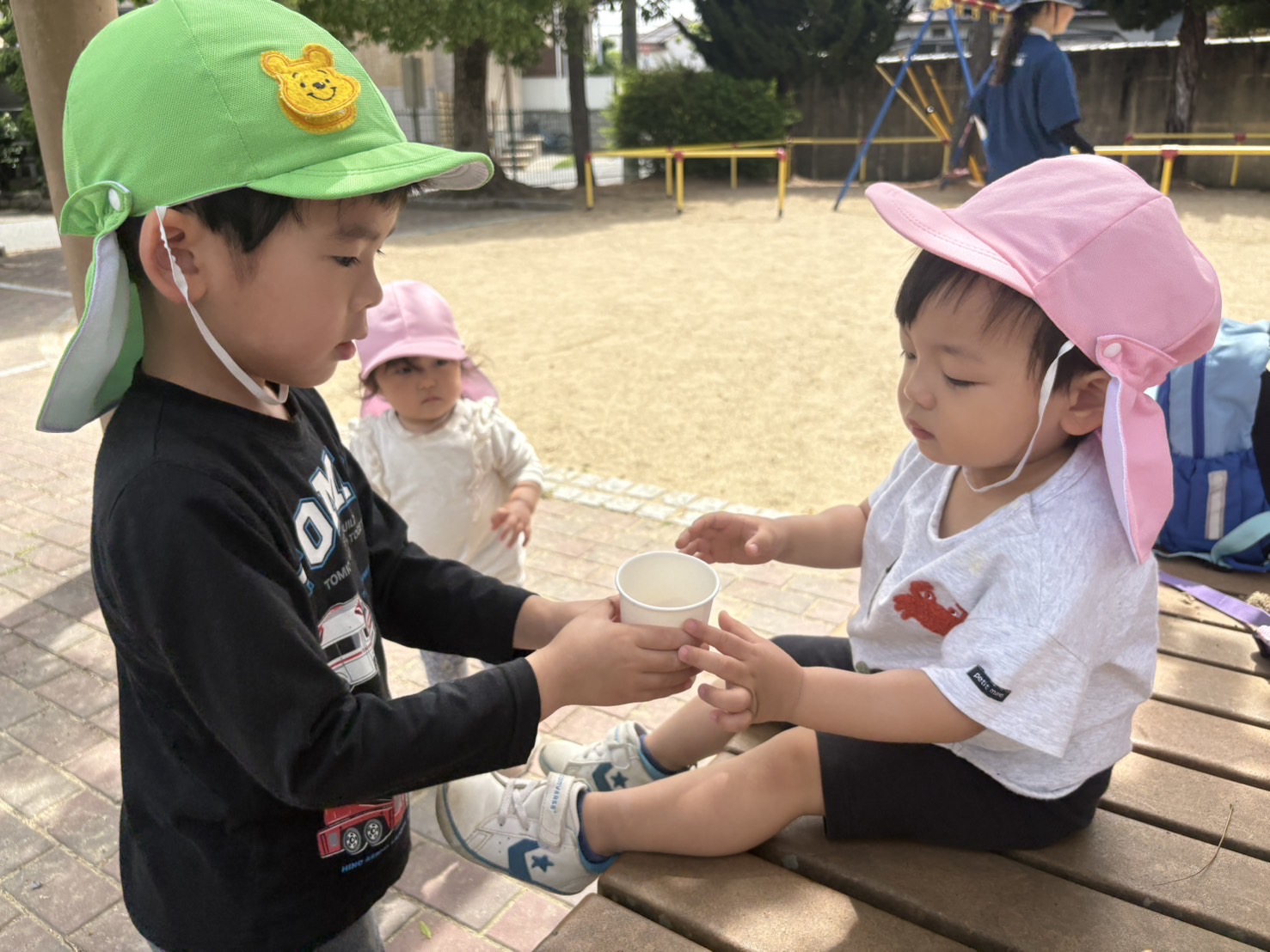 お茶のコップをくじら組さんから受け取り、いつも以上に楽しいお茶休憩にもなりました🍵