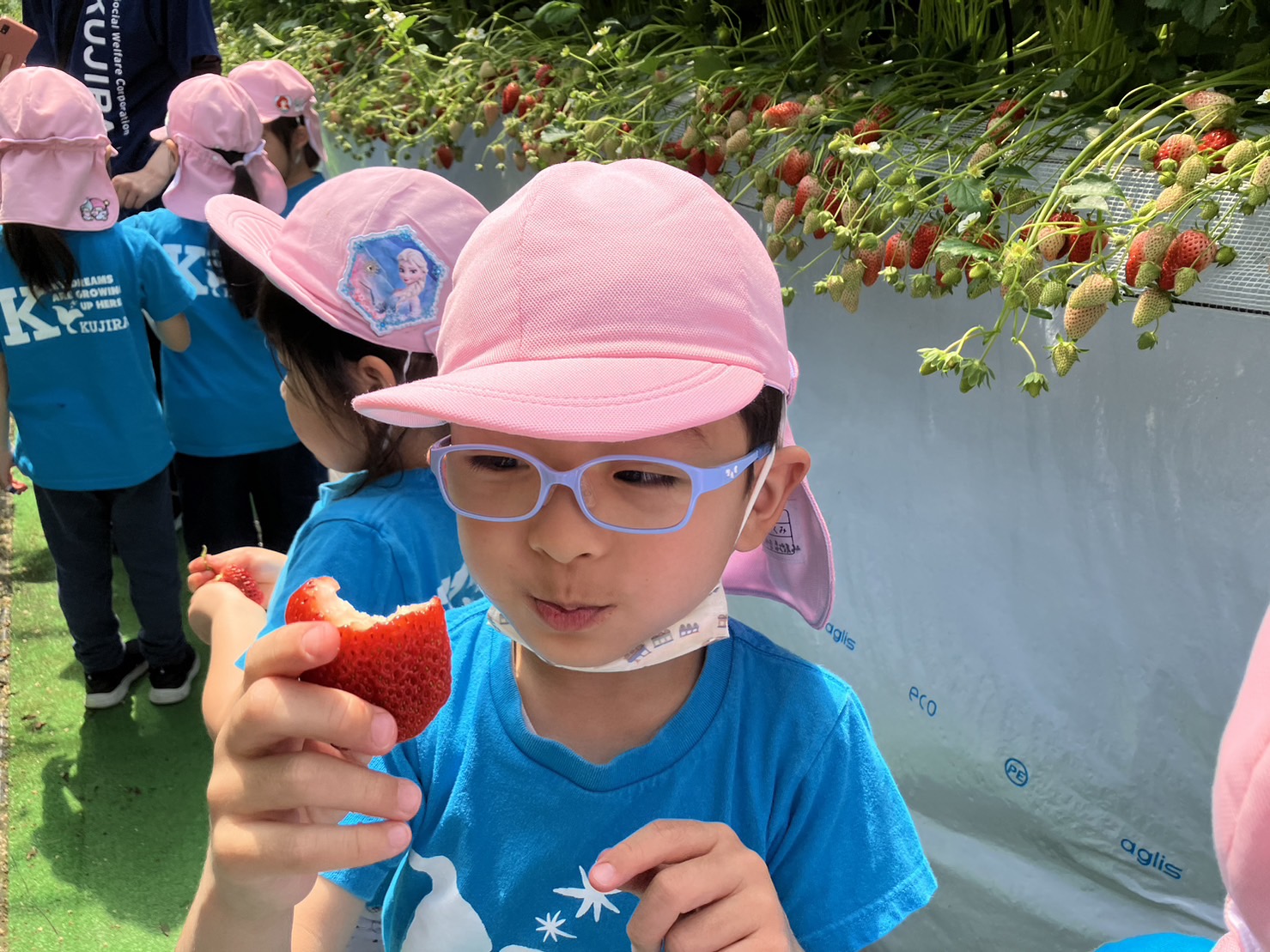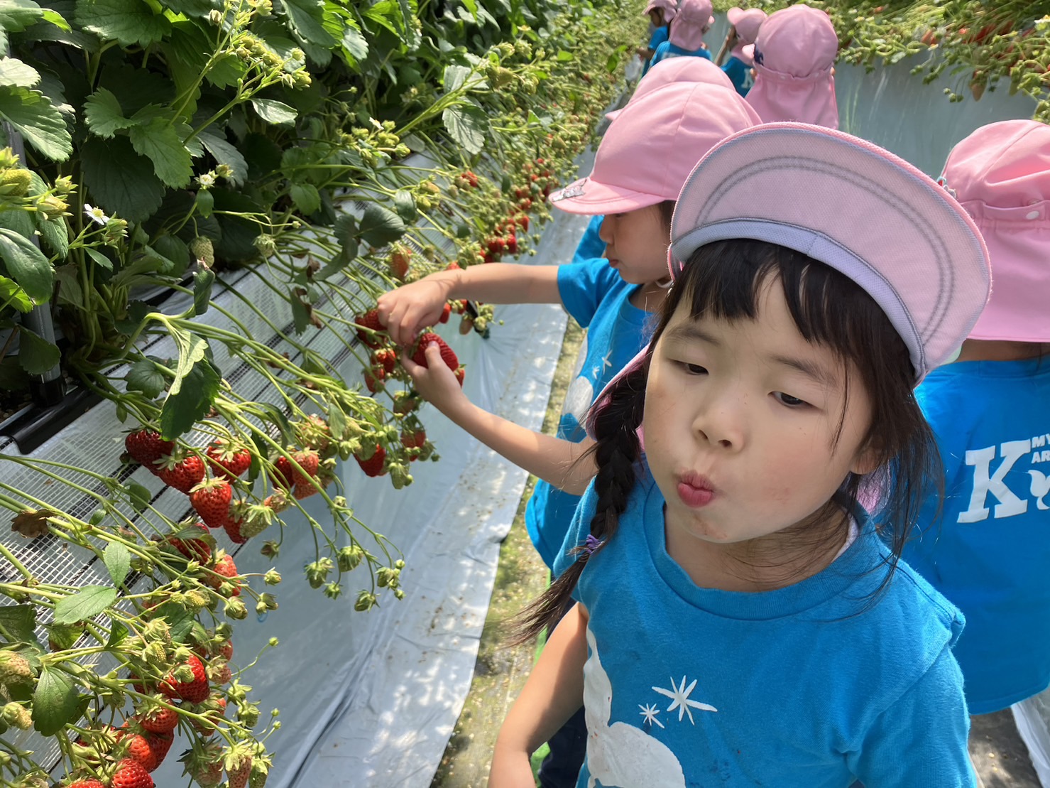 ズラーーーっと並ぶたくさんのいちごに目を輝かせていました。