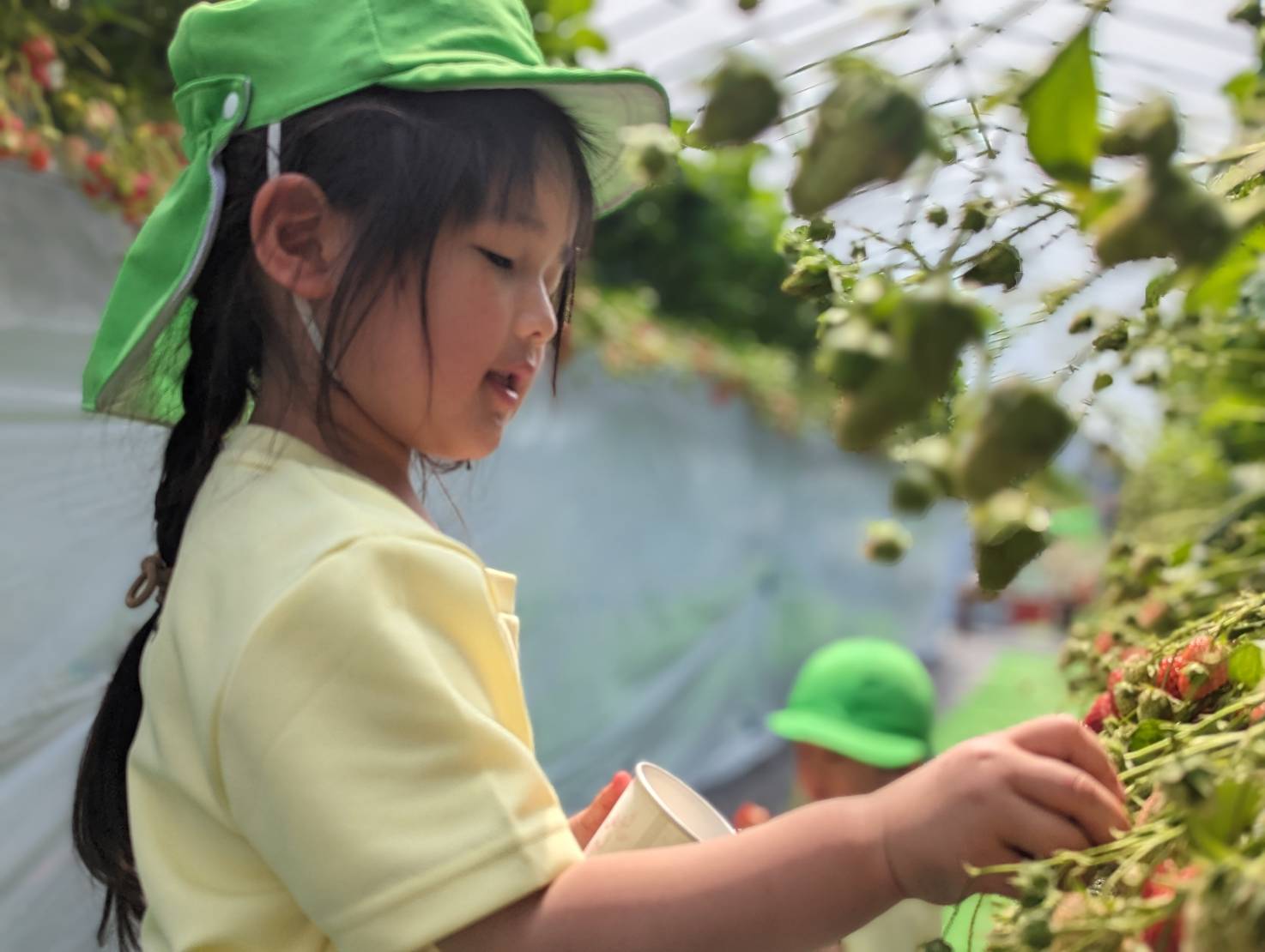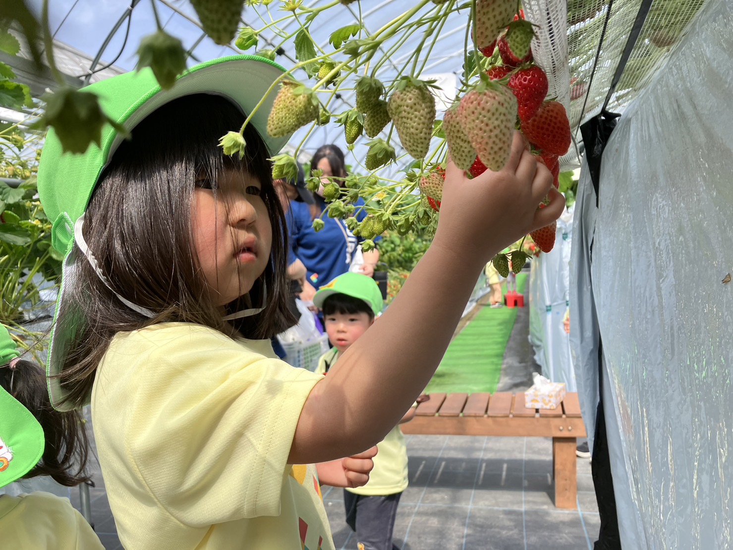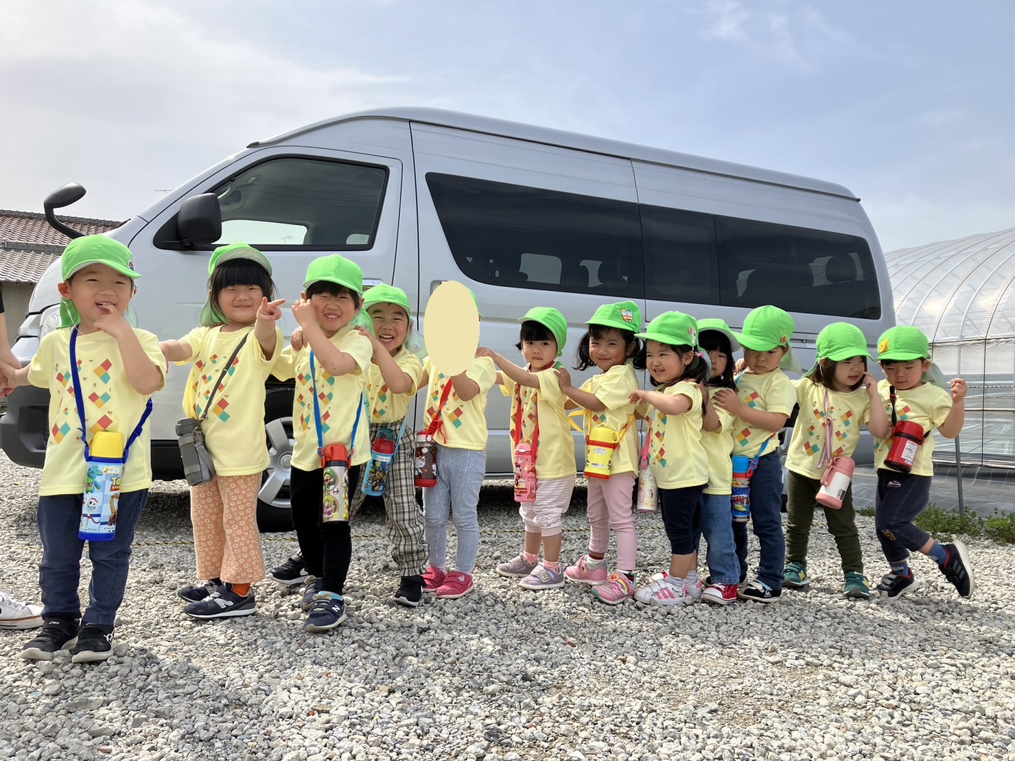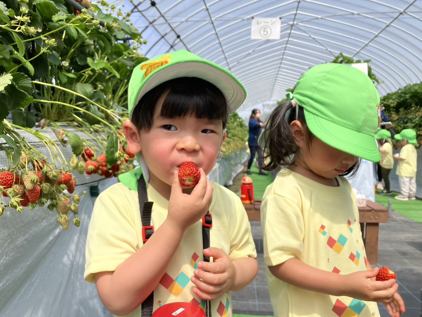 行きのバスでは『ちっちゃなイチゴ』の歌を歌ったり、園歌を口ずさんだりしながら「まだかな🎵」とわくわくした様子でした。