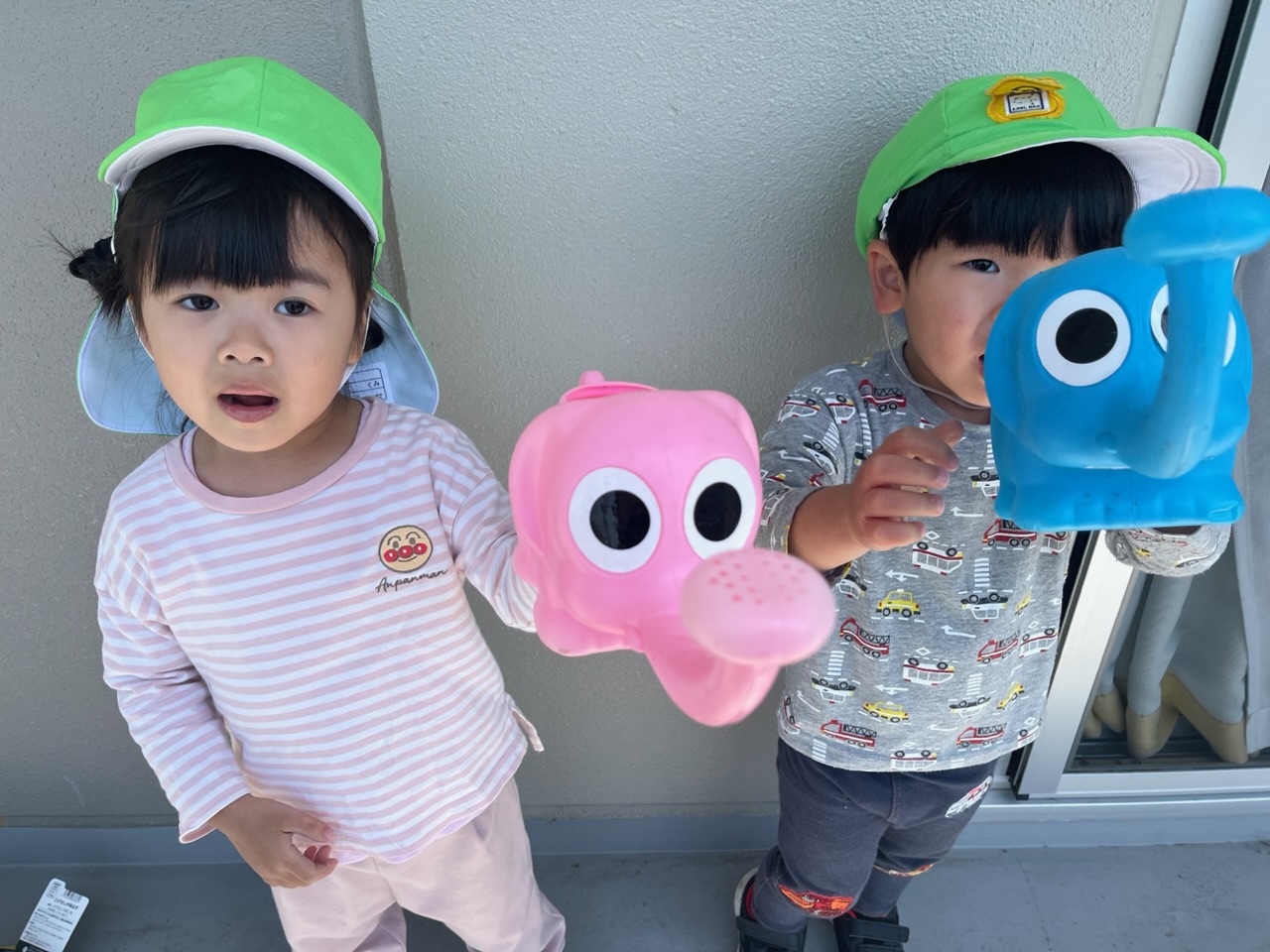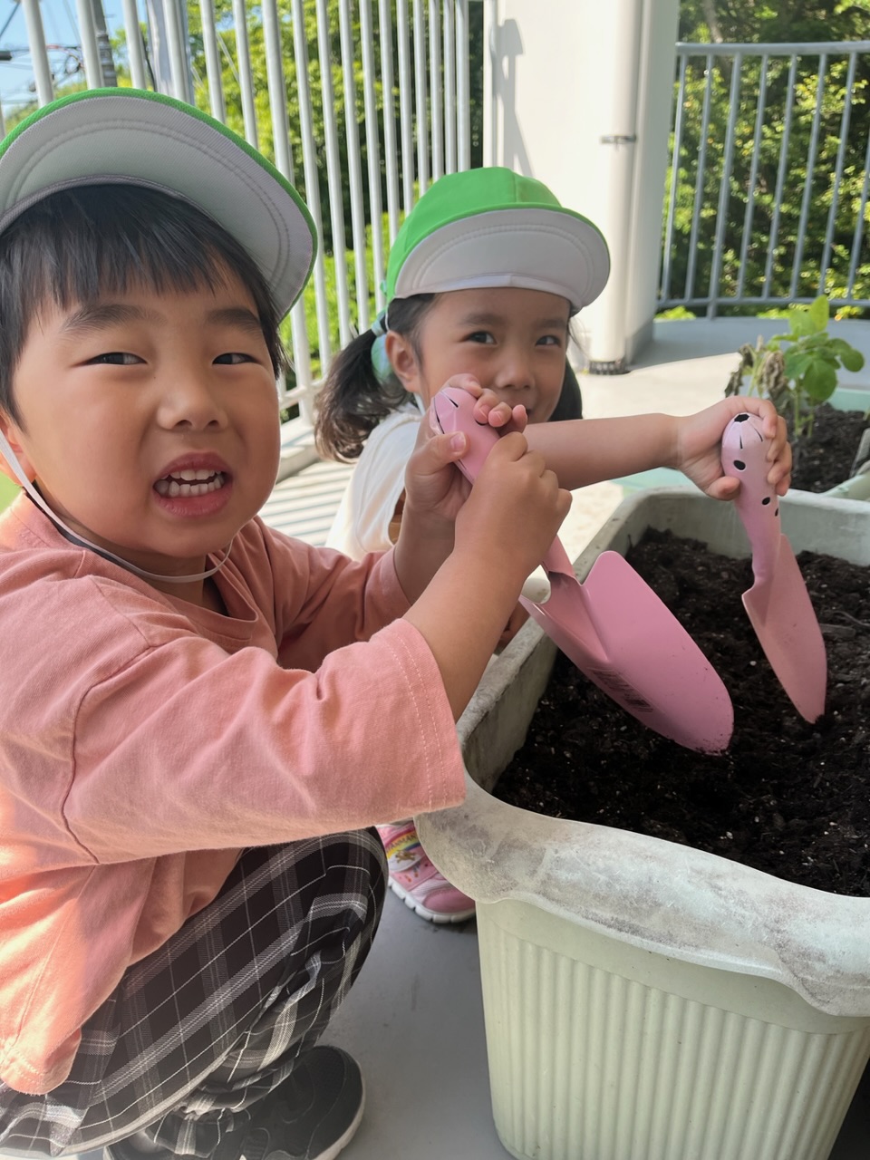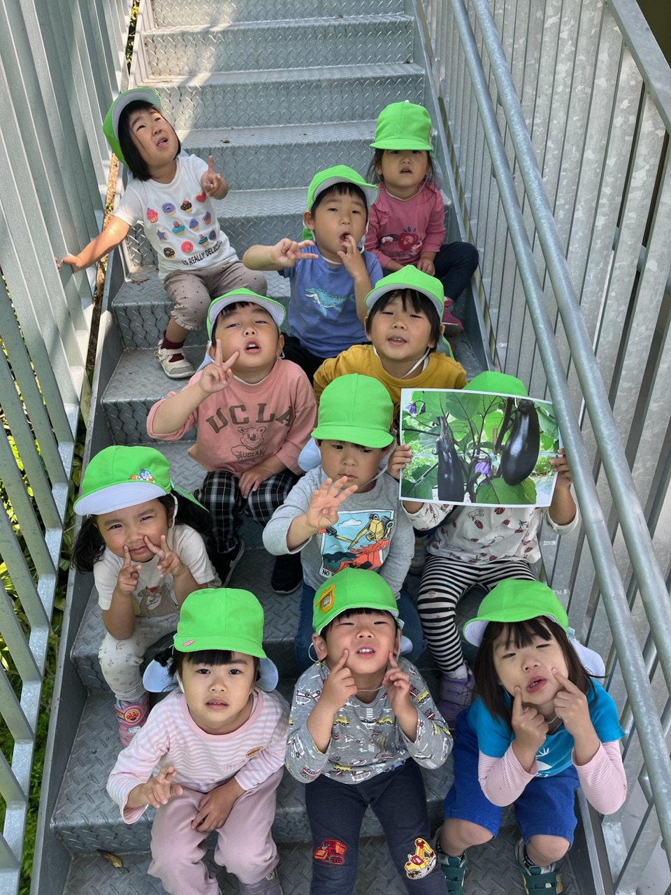 「大きくなりますように。と思いながらお世話すると美味しいナスができるよ。」と担任が話すと、ナスの前で手を合わせ「大きくなりますように」と毎日言っています。