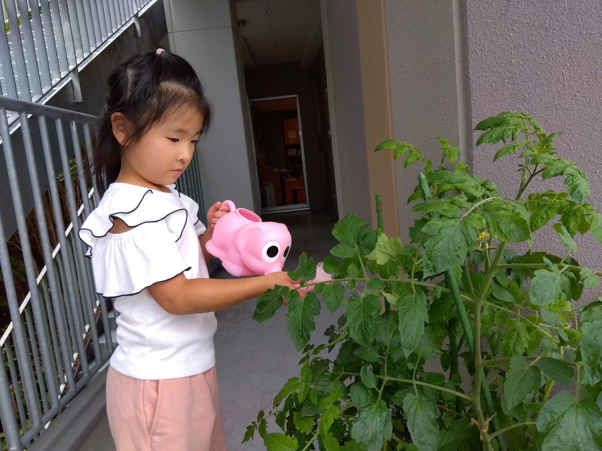 育てているミニトマトに水をやります🍅