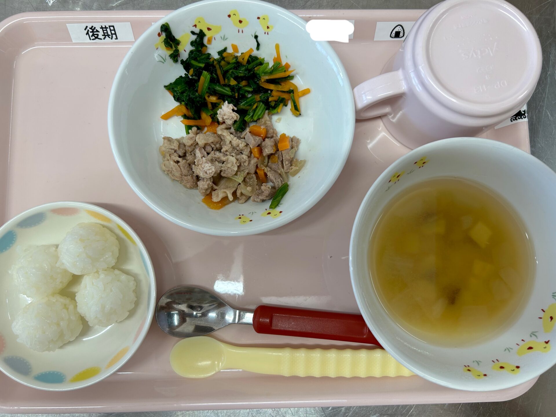 少しずつ手づかみ食べの練習もしているので、その子に合わせておにぎりにしてもらっています🍙