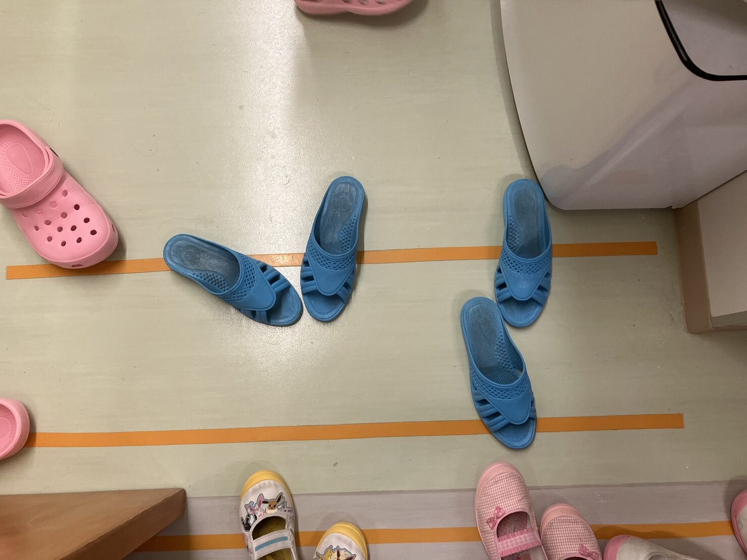 近くにいた子どもたちに、『こうした方が気持ち良いし、はきやすいよね』と話をしたら、その後はこの状態がキープされていました。