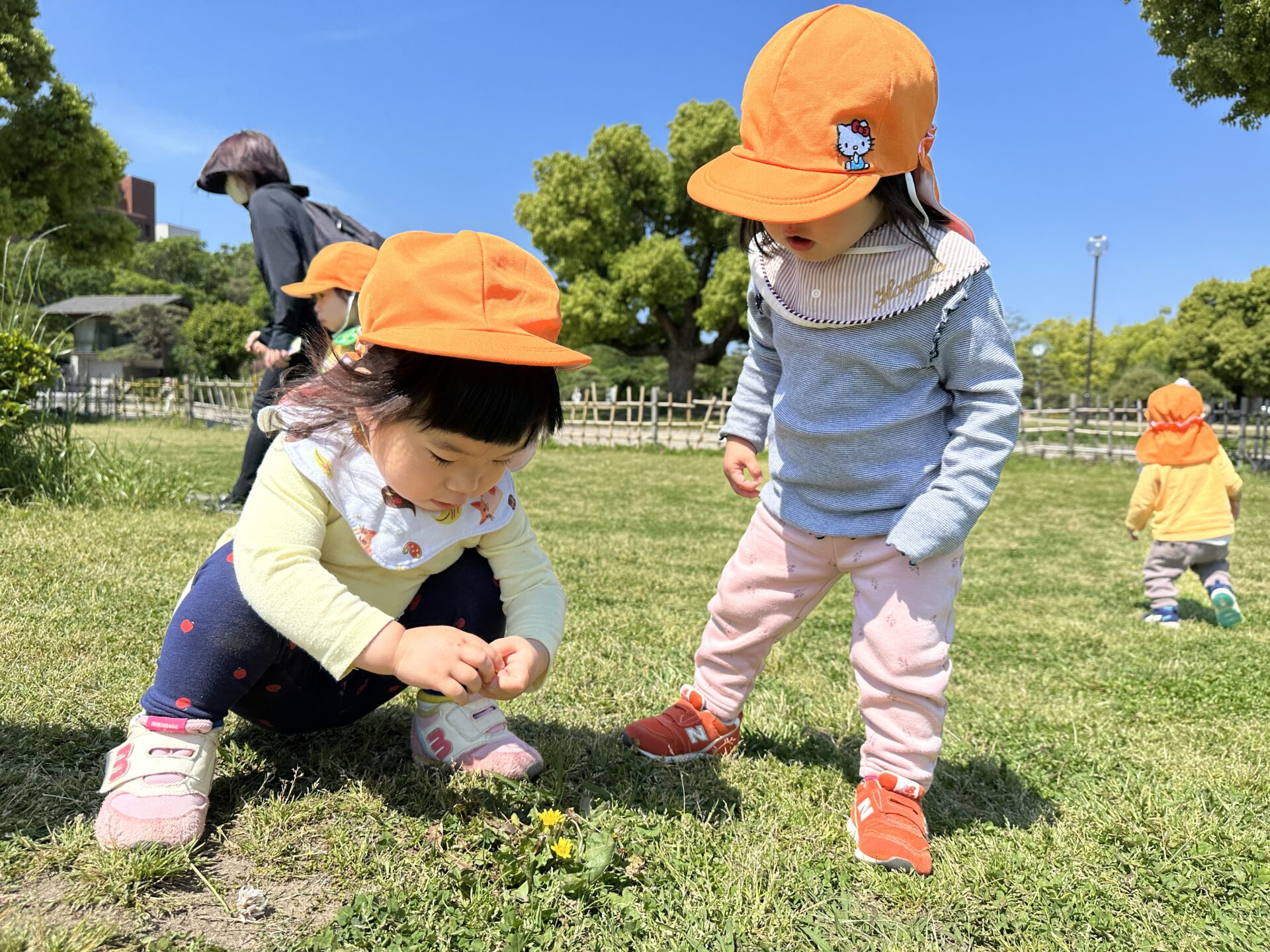 この前の散歩では、にじ組のお兄さんお姉さんに手を繋いでもらい初めて歩くことに挑戦した子どももいます。ワクワクした表情で歩く姿がとても可愛らしかったです。