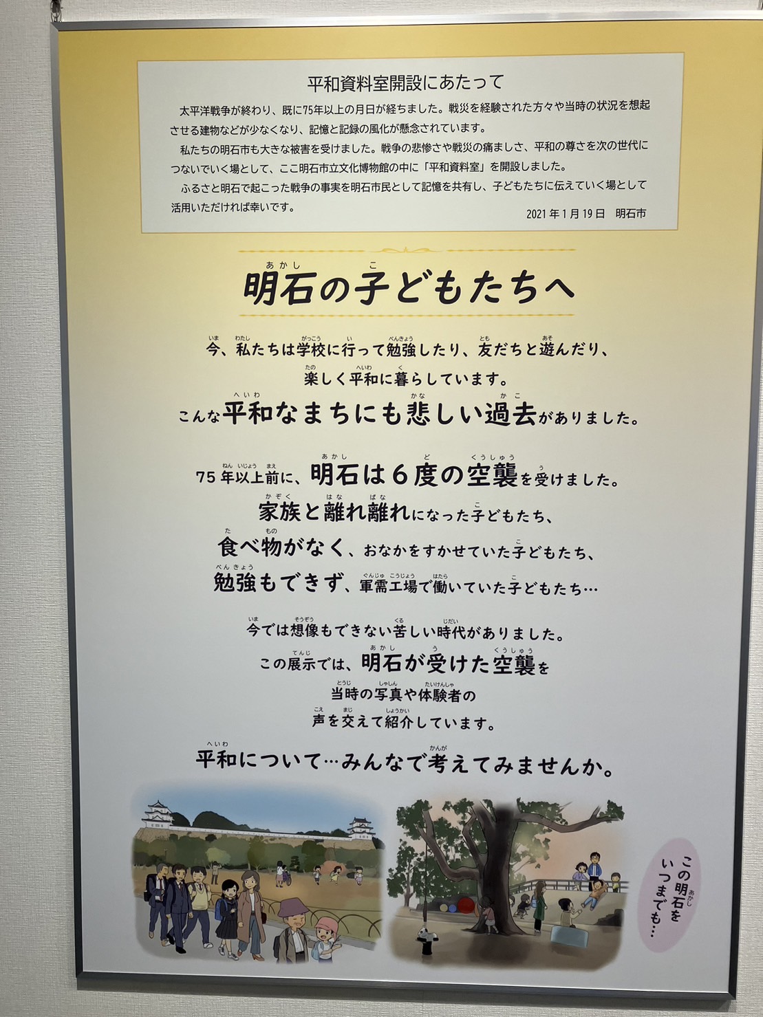 しかし、私たちは平和のありがたさと平和を続けていく大切さを、未来を生きるこどもたちと『共に考えて』いきたいと思っています。