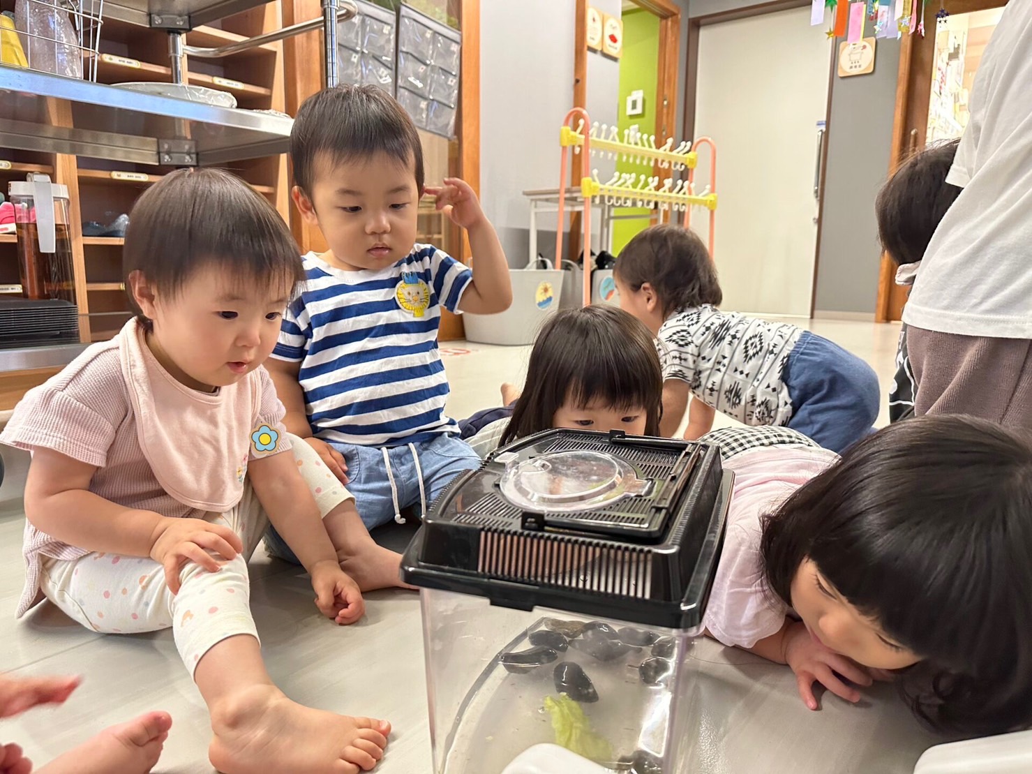 お昼寝前には玄関フロアにいる亀に「おやすみ」の挨拶をするのが日課なので、そのために頑張って食べようとする子どももいてかわいらしいです♡