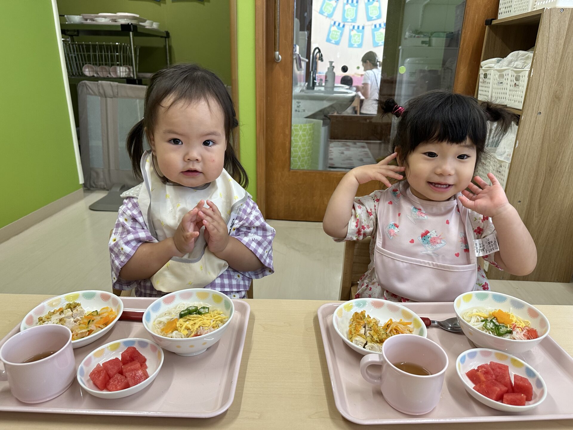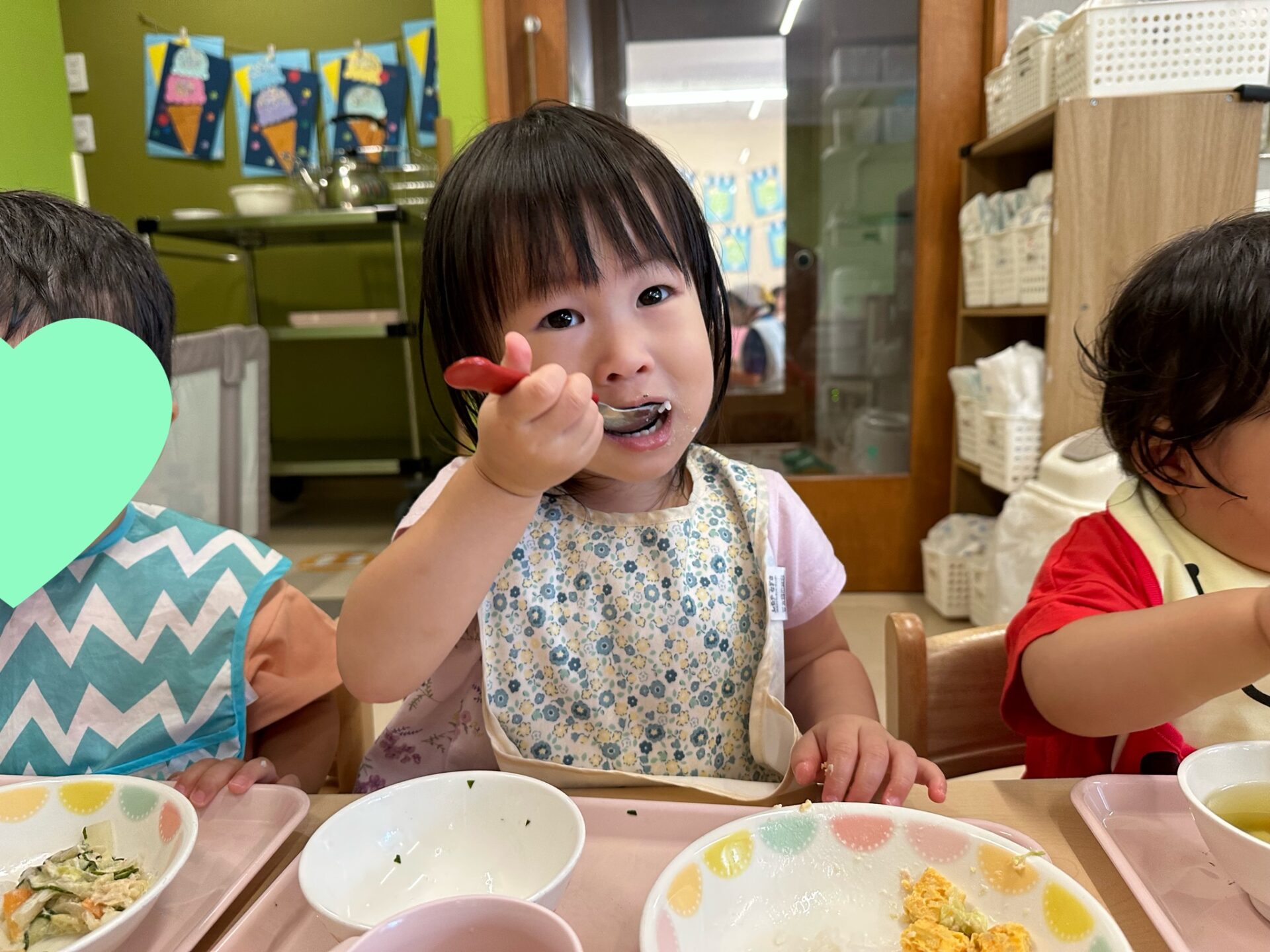 日に日に暑くなり食欲が減ってくる子どももいますが、一人ひとりのペースに合わせて楽しく食事ができるようにしていきたいと思います。