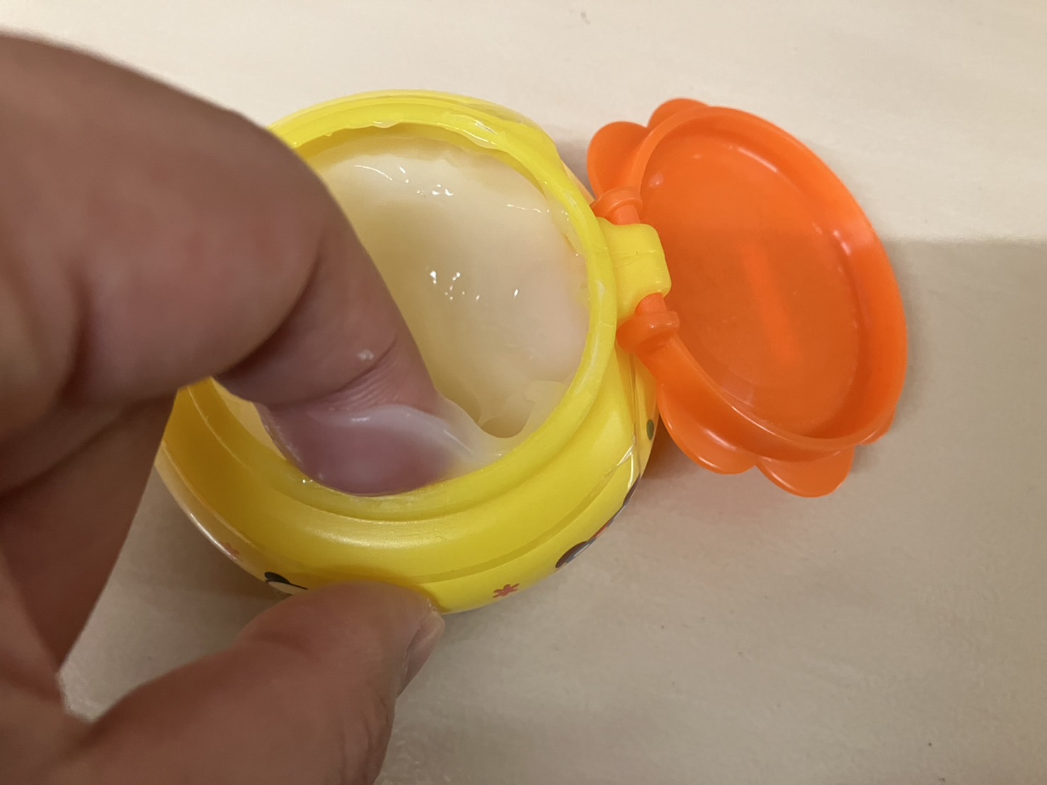 フタの周りにのりがついて固まってしまうと、中身も固まり始めます。容器の外ものりがついた手で触ってしまうと後日パリパリにっているなることがよくあります。きれいに使うことを声かけていきます。