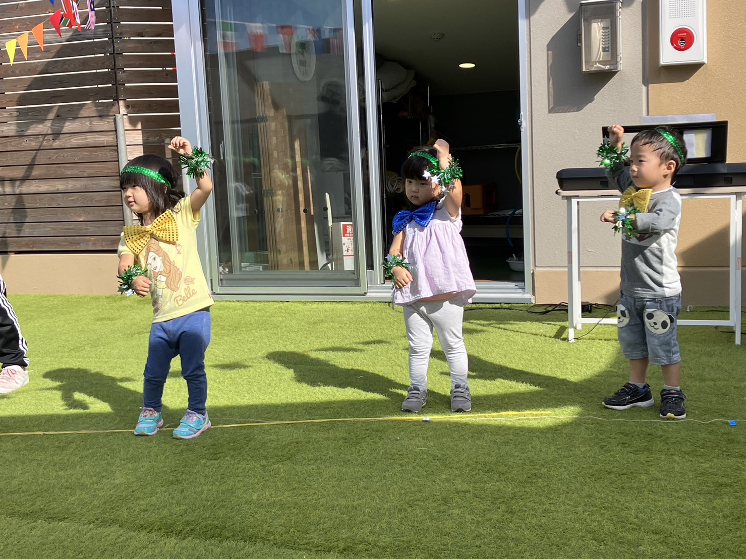 大きい子たちのようにはいきませんが、自分なりに体をいっぱい動かして体操やダンスも頑張ります。