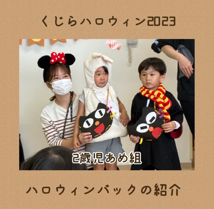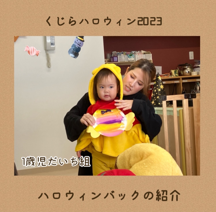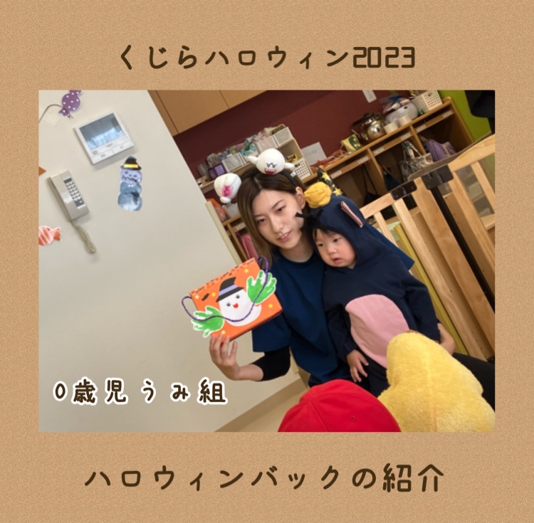 0歳児うみ組は園内で仮装スタッフからお菓子をもらいました。