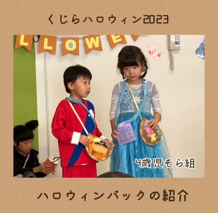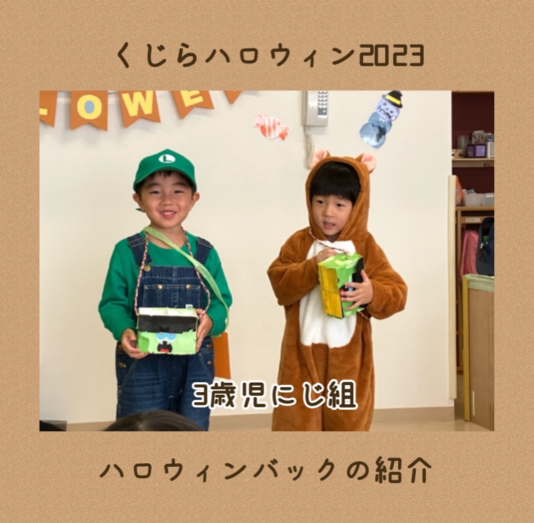 ダンスを見た後は、各クラスのハロウィンバック(お菓子を入れる)を見せ合いました。