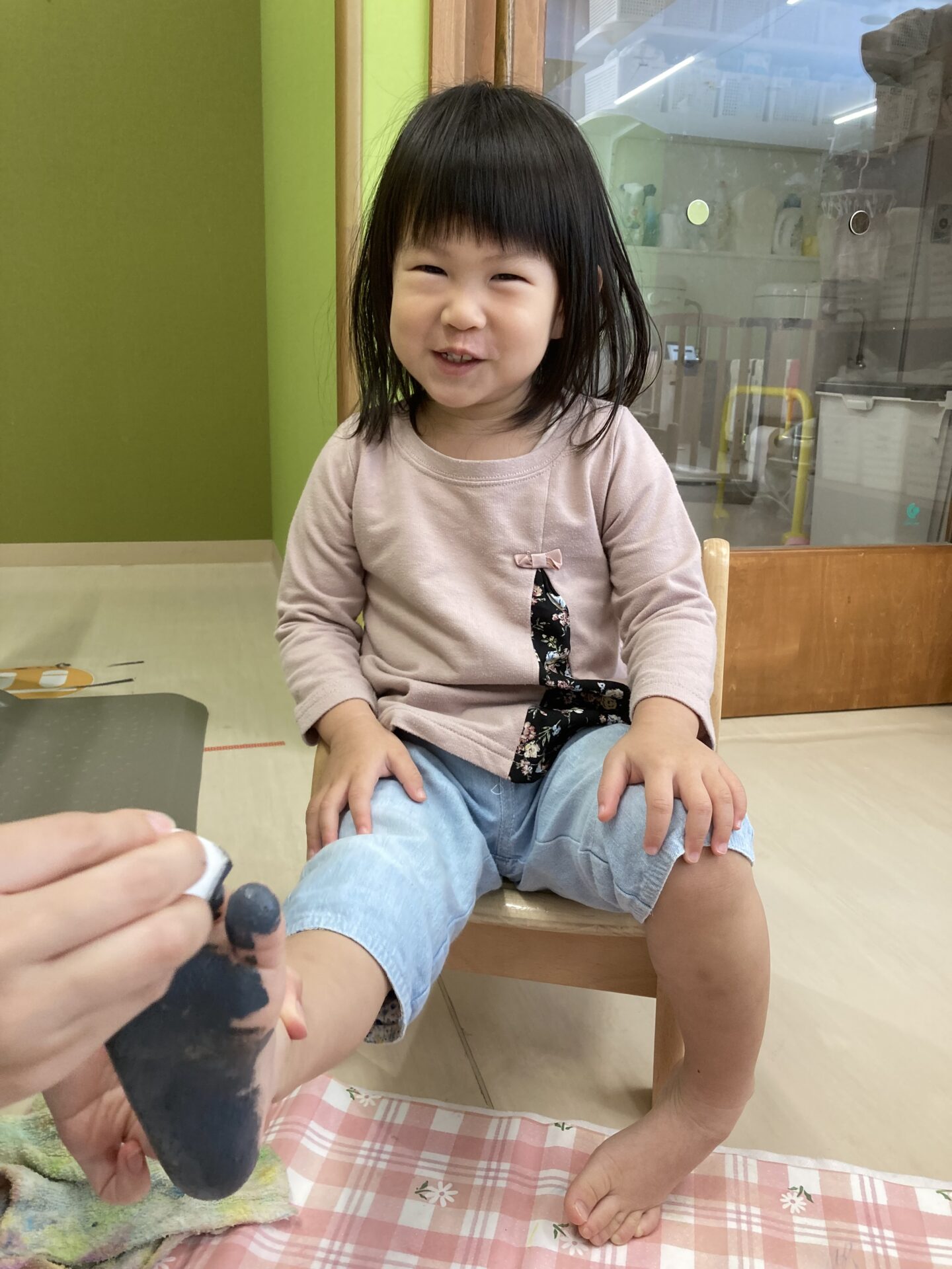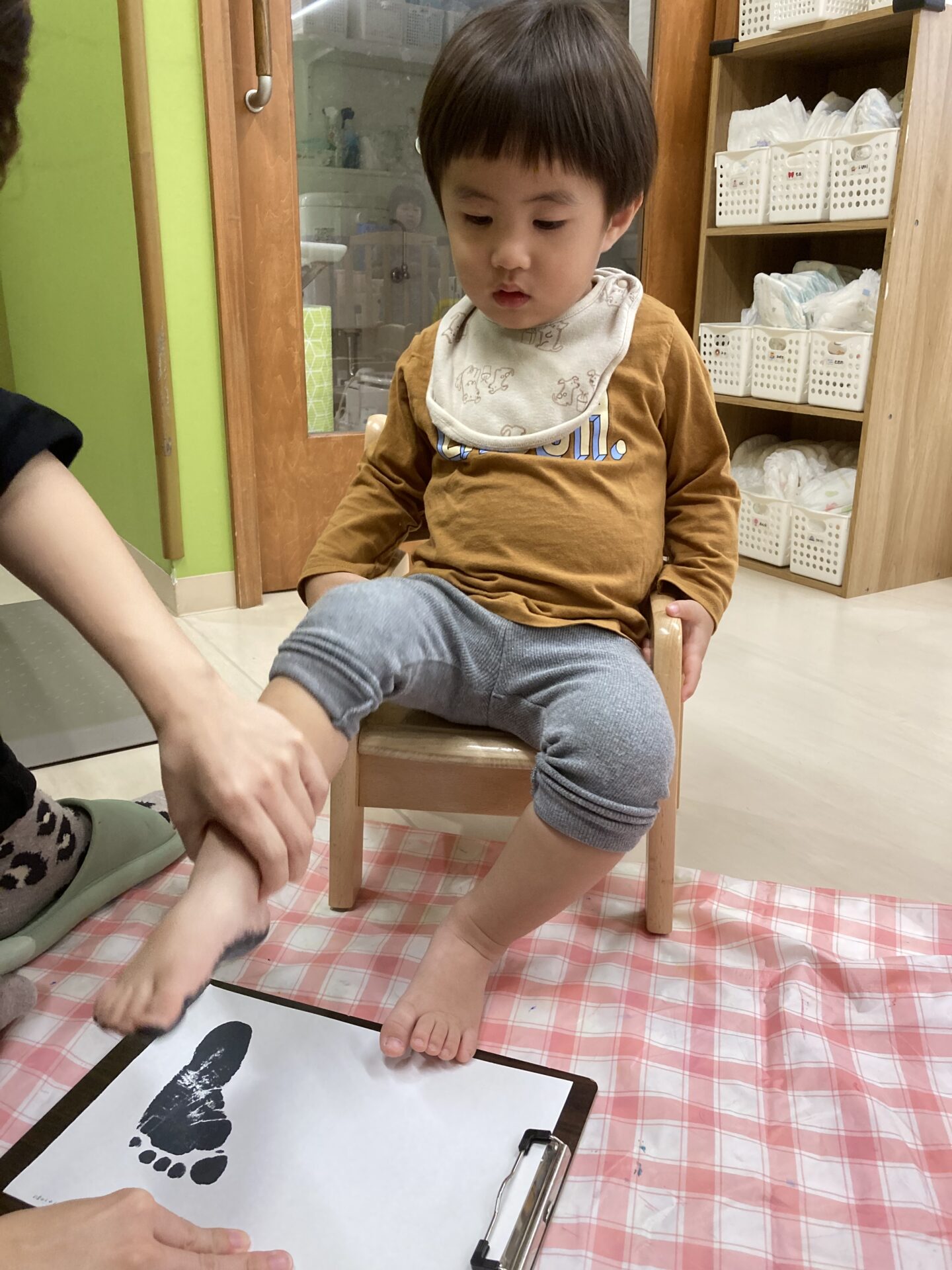 絵の具を塗る感触にも慣れ、嫌がることなく足を出してくれるようになりました。