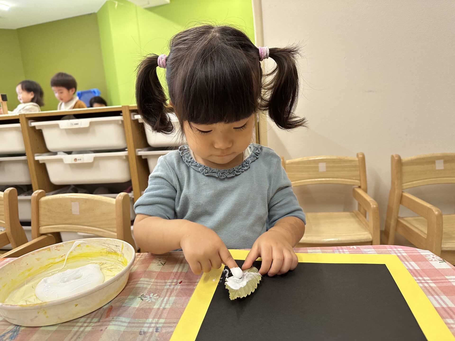 自分でのりを塗ることに初めて挑戦!