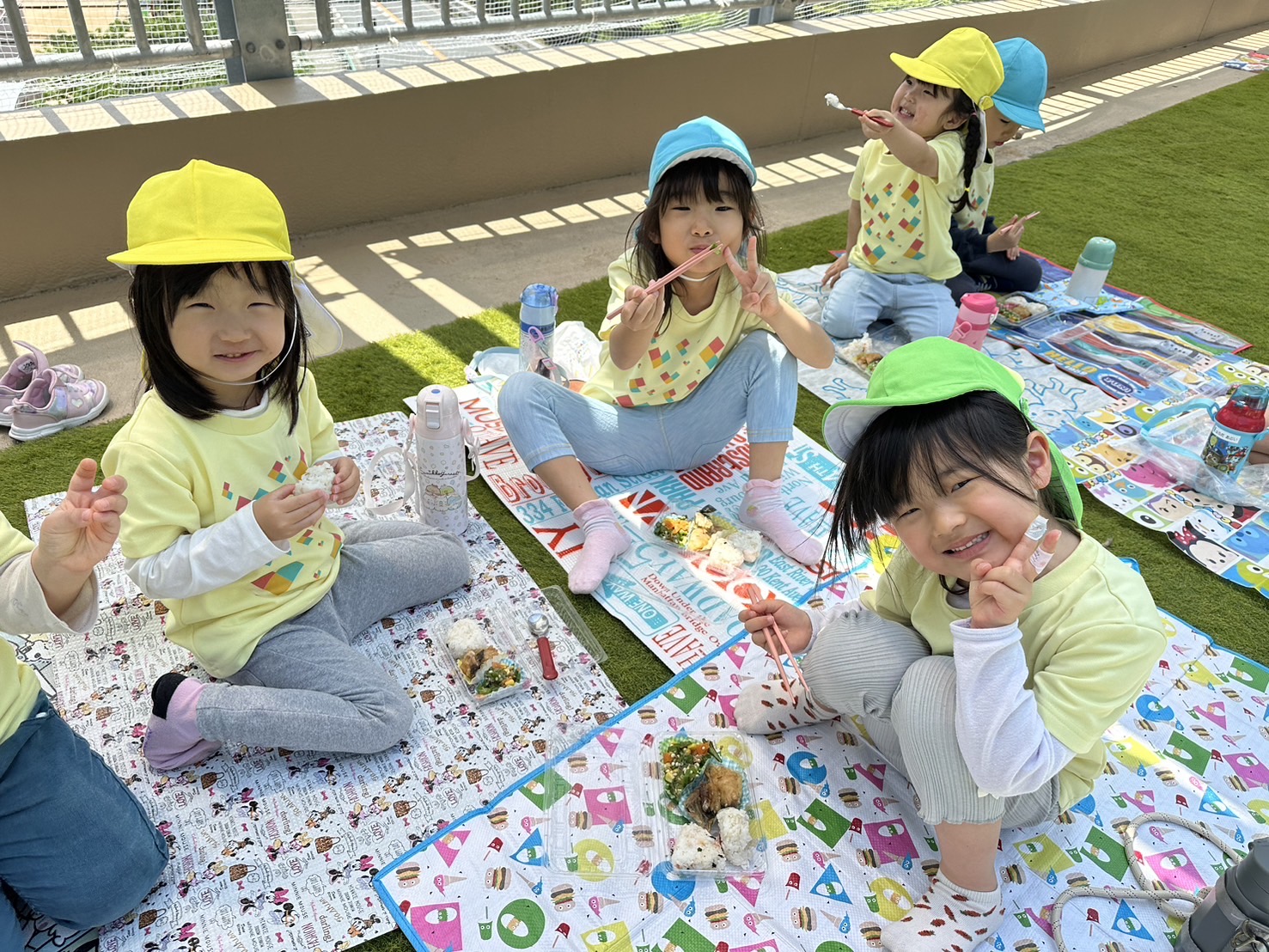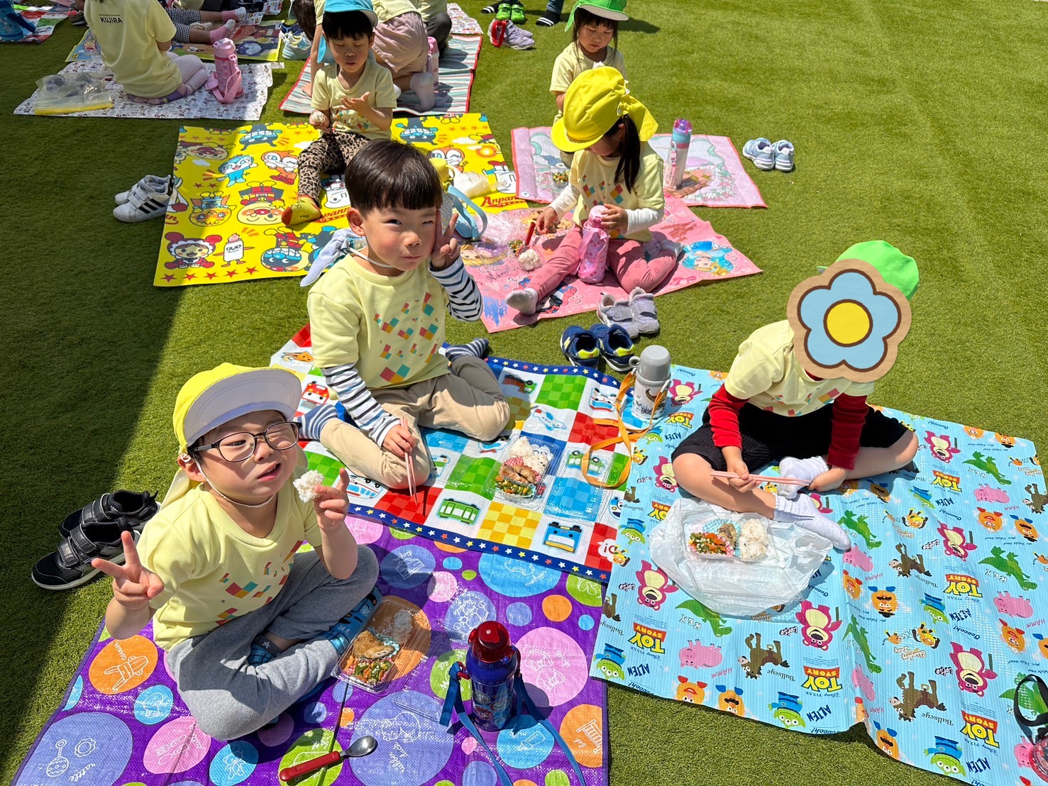 天気が良かったので園庭で食べました😊
