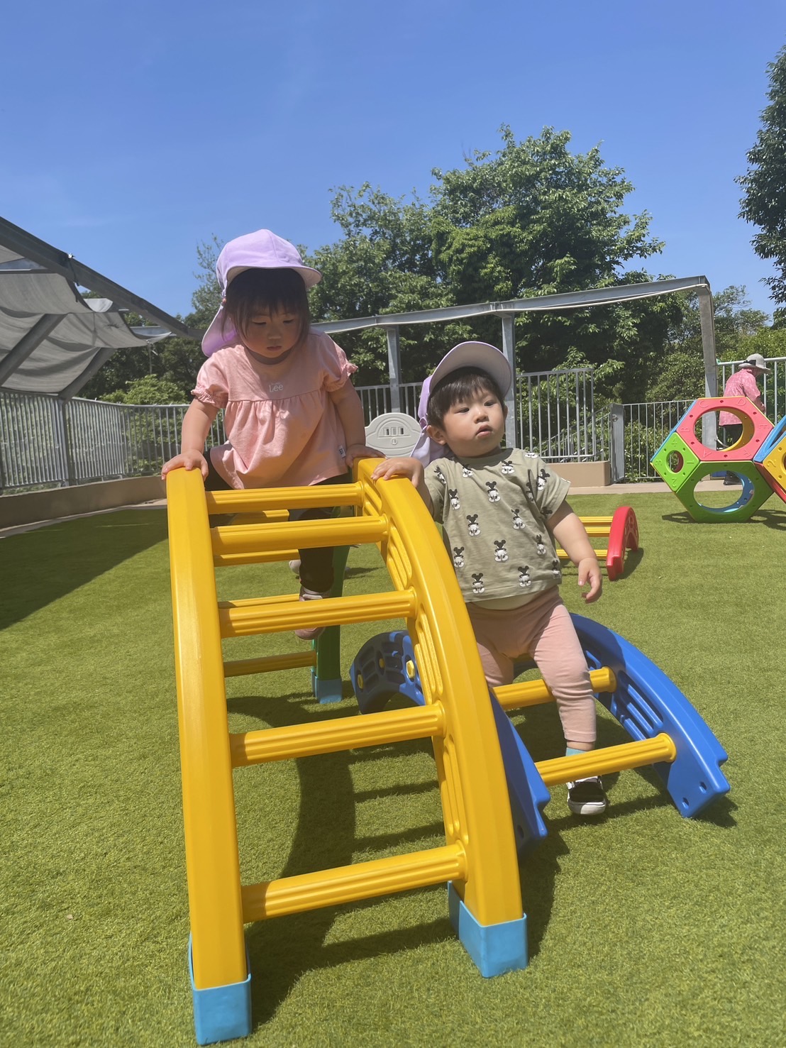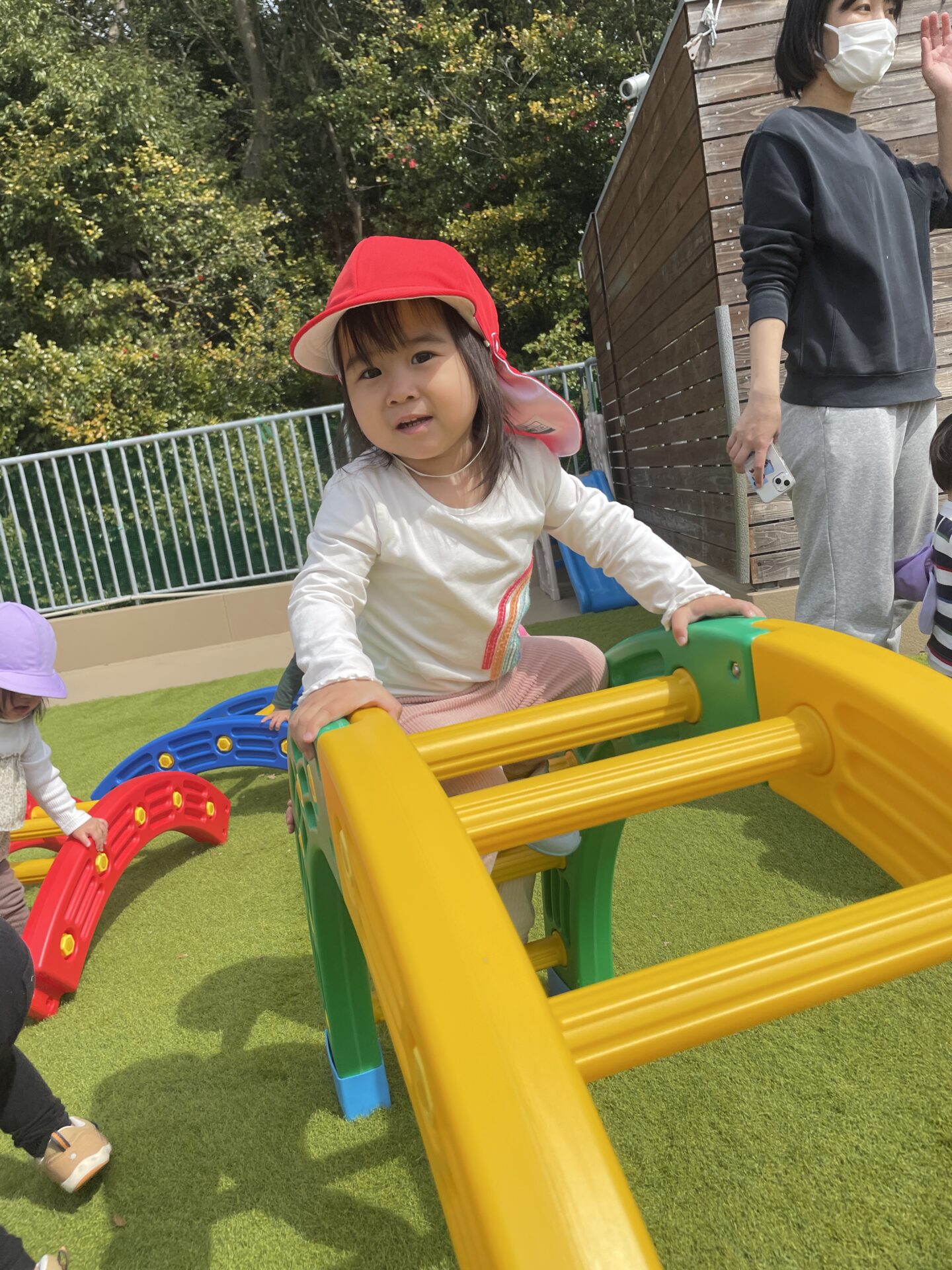 はしご型の大型遊具にも挑戦し、1人でてっぺんまで登れるようにもなってきました。