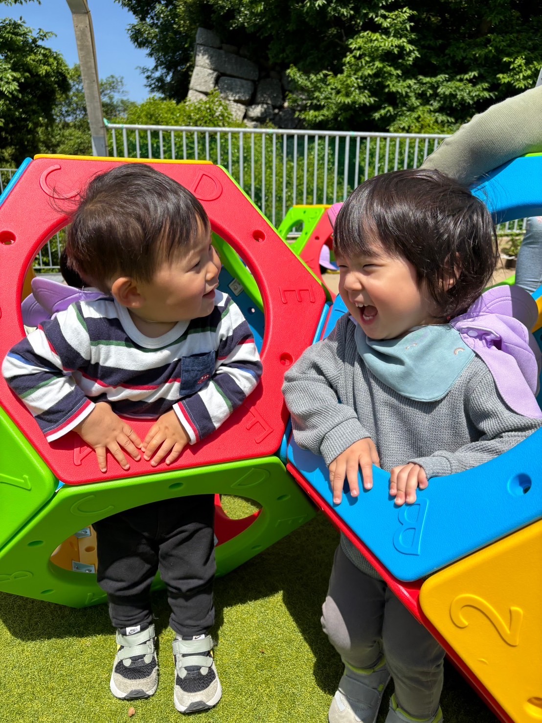 最近は友だちとの関わりも増え、一緒に遊びを楽しんだり、目を合わせて笑い合ったりする事も見られるようになりました。