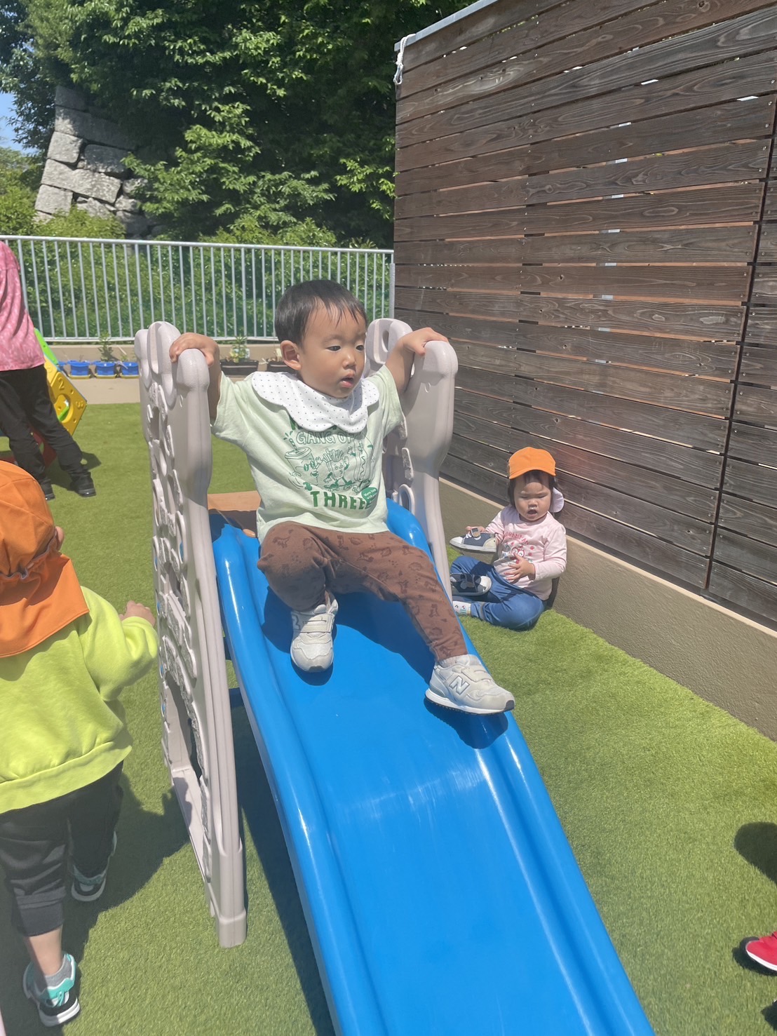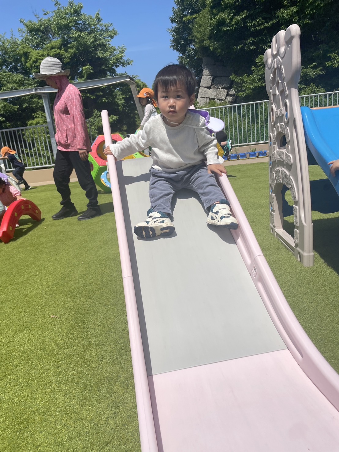 様々な種類の滑り台を繰り返し行い、楽しんでいます。滑り終えるといつもにこにこ笑顔で嬉しそにしています😄