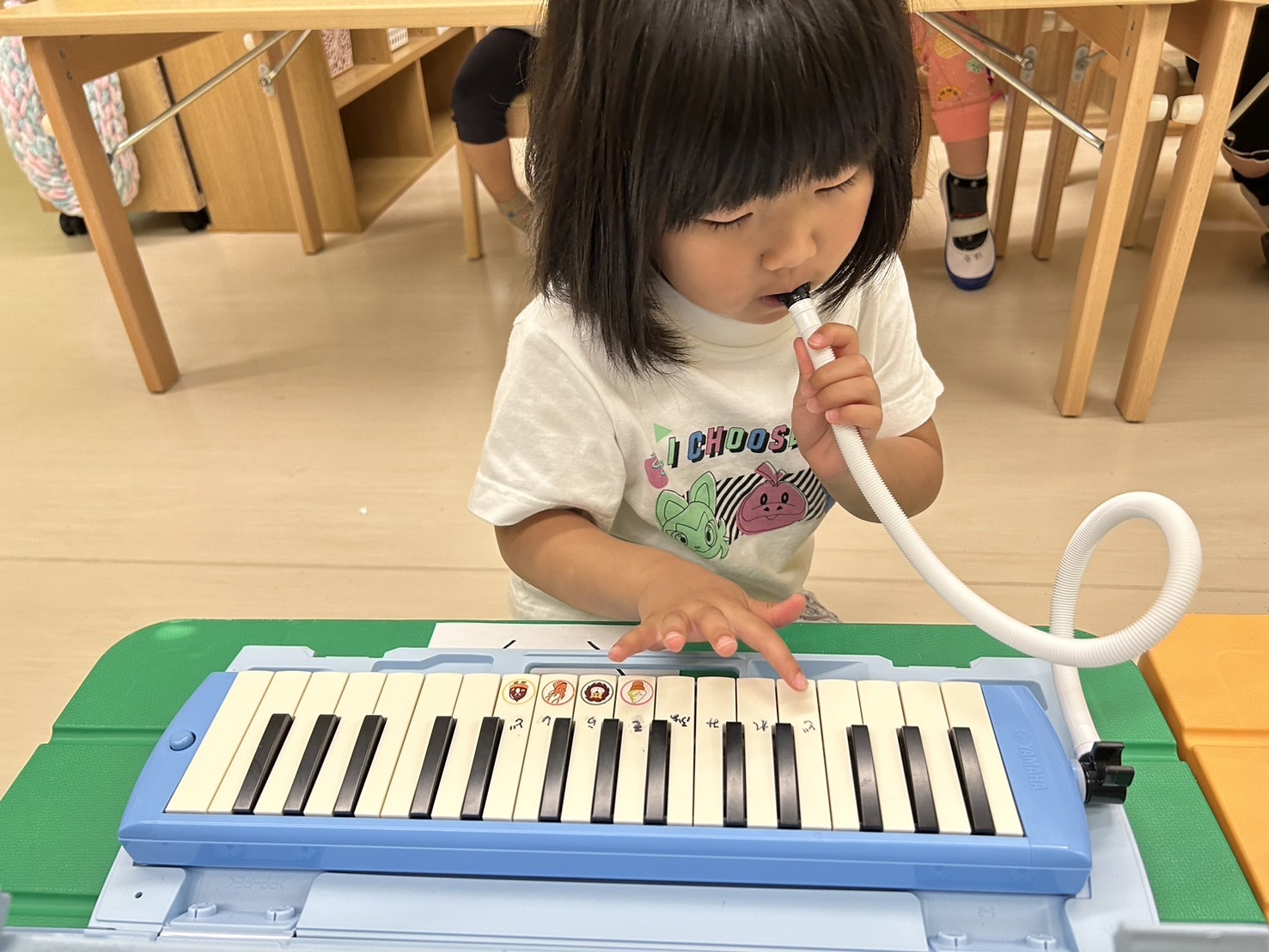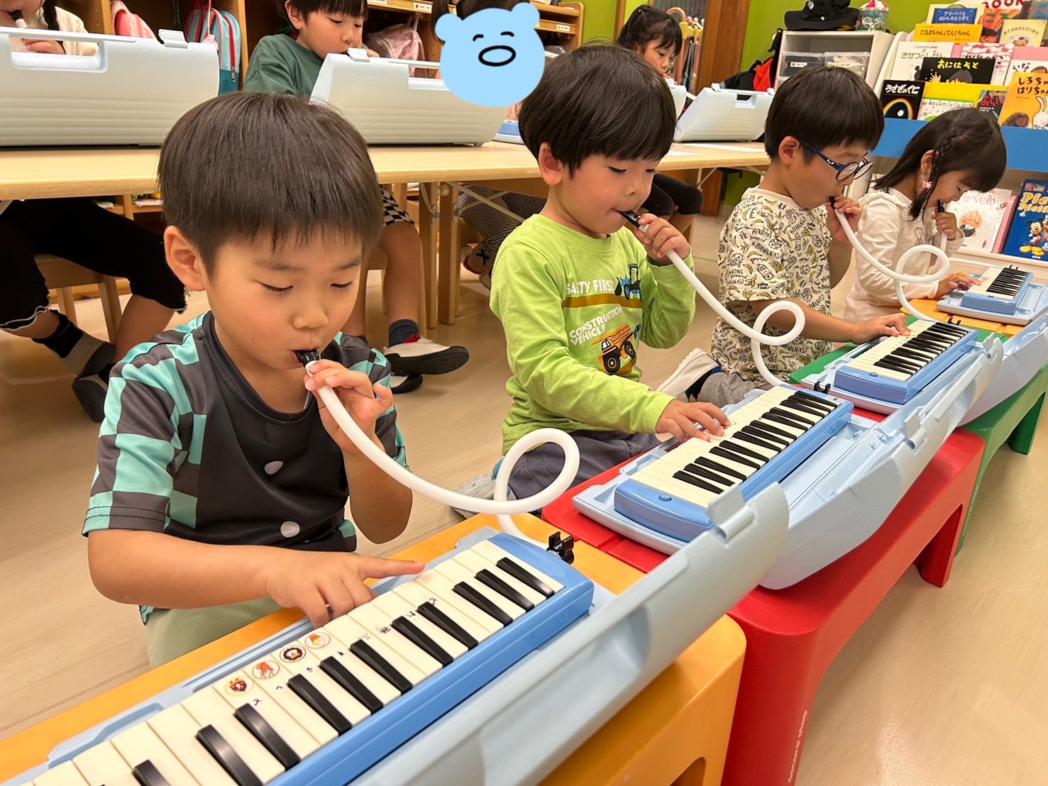 くじら組の子ども達が鍵盤ハーモニカをしていると「なんの曲かな?」「早くしたいね」と、これからの活動にとても期待をしている子ども達です☺️