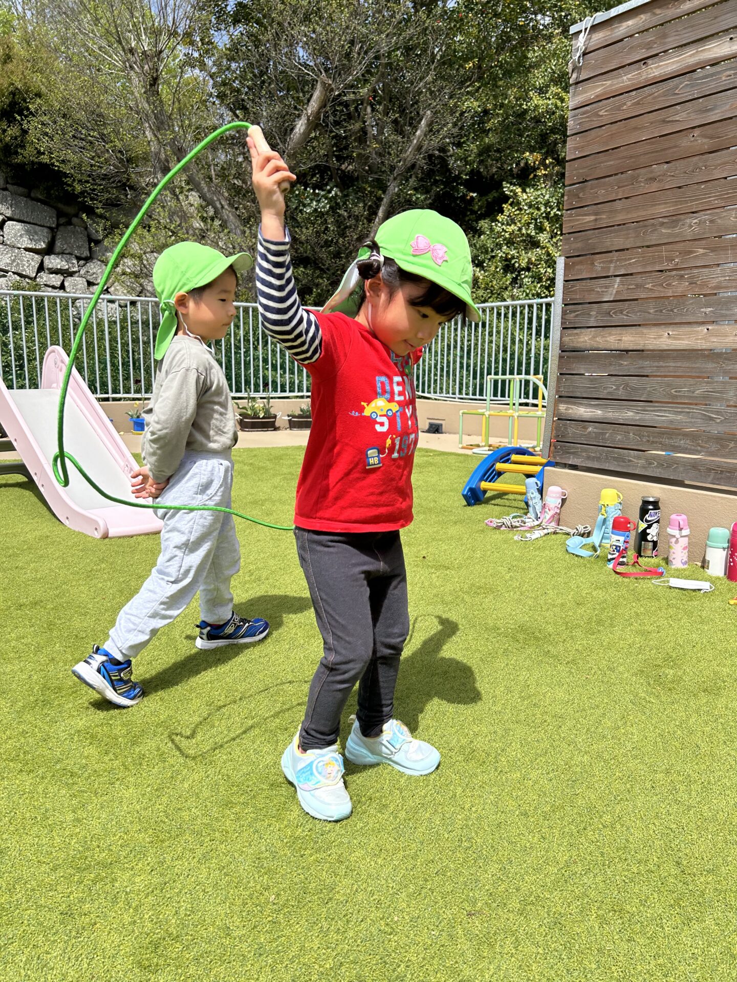 今年度から4歳児クラスでも縄跳び、鍵盤ハーモニカに取り組んでいます😄