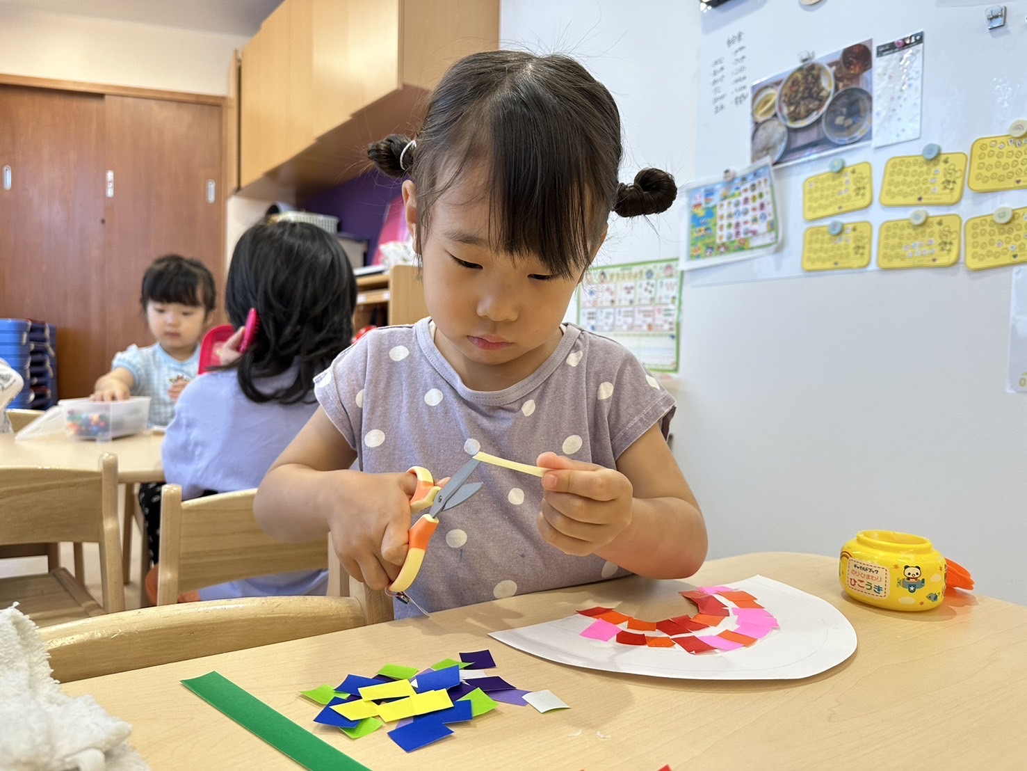 自分のハサミやのりを使えることが嬉しく、大切に使いながら製作に取り組んでいます😊