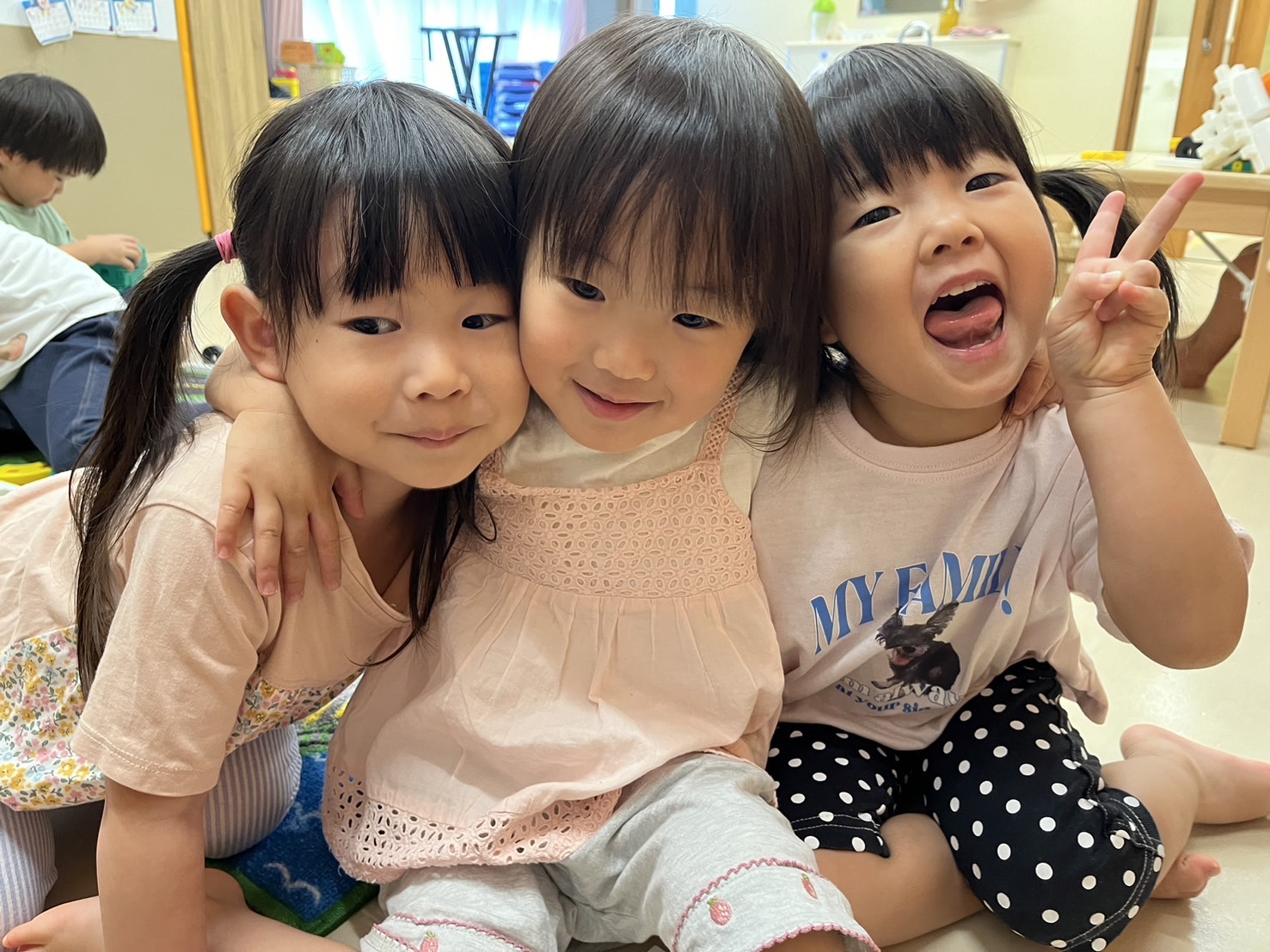 また、最近のあめ組はお友だちとのかかわりが増えてきて、いつも一緒にひっついて遊ぶほど仲良しです💗