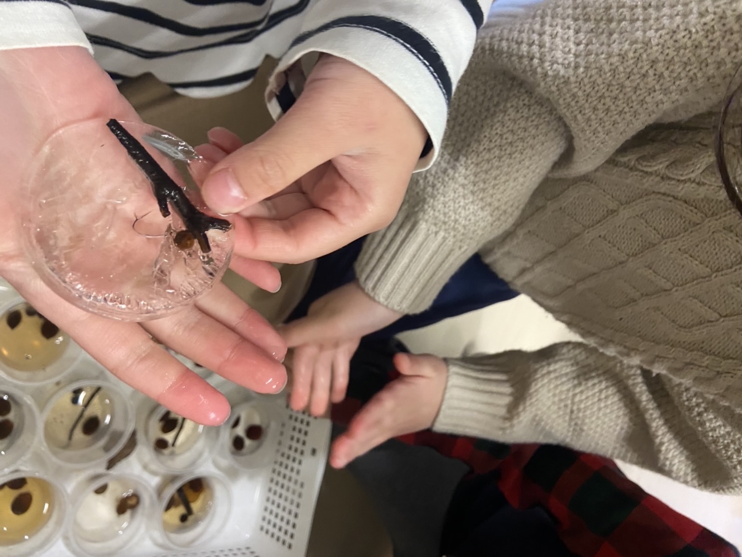 2025.02.20 ブログ 念願の氷 今年の寒波では雪が降らない明石でも雪が降ったので氷を作ろうと5歳児くじら組が準備していました。 なかなかできなかったのですが、昨日やっと念願叶ってできたのでご紹介します。 一覧へ戻る