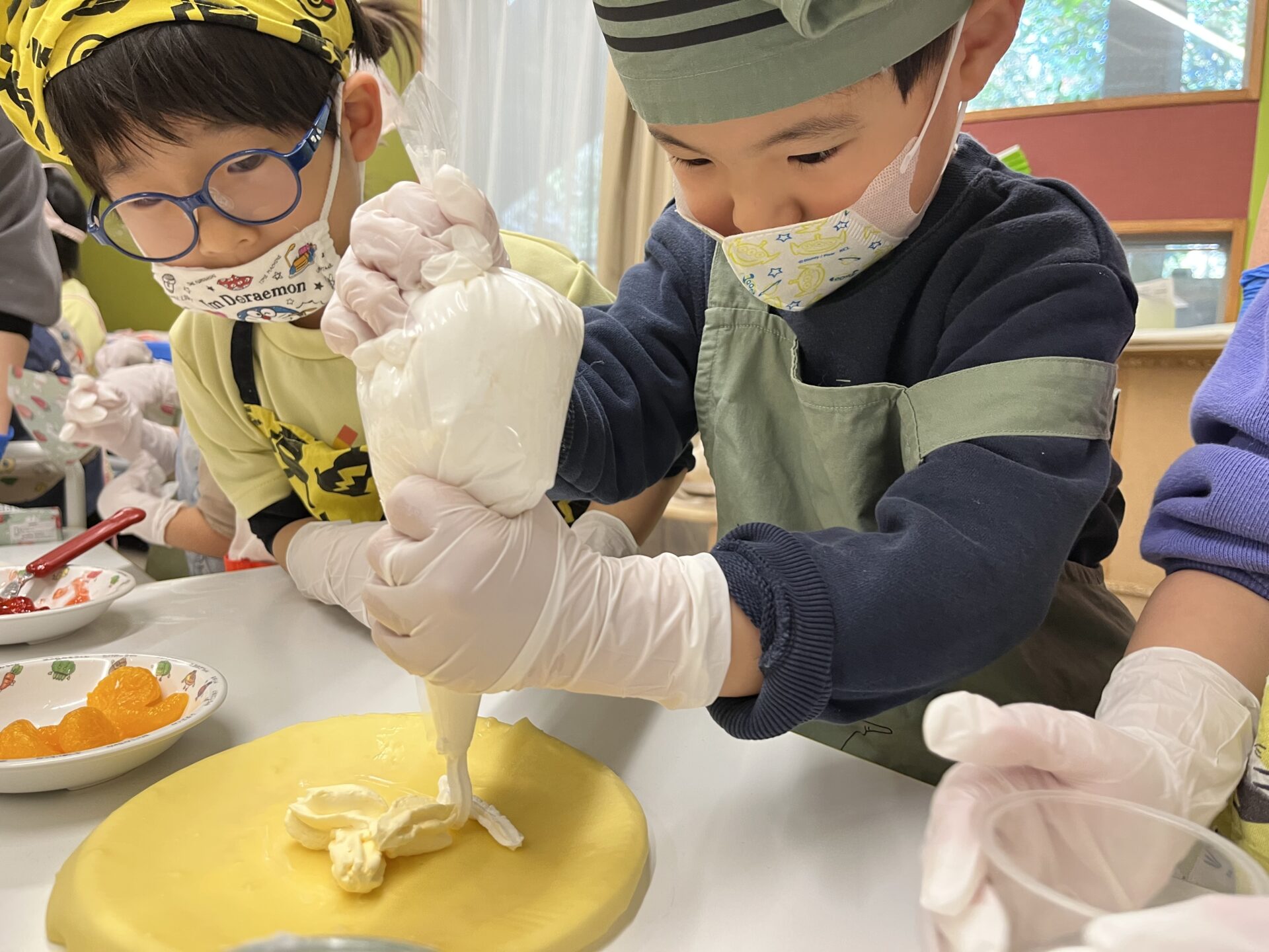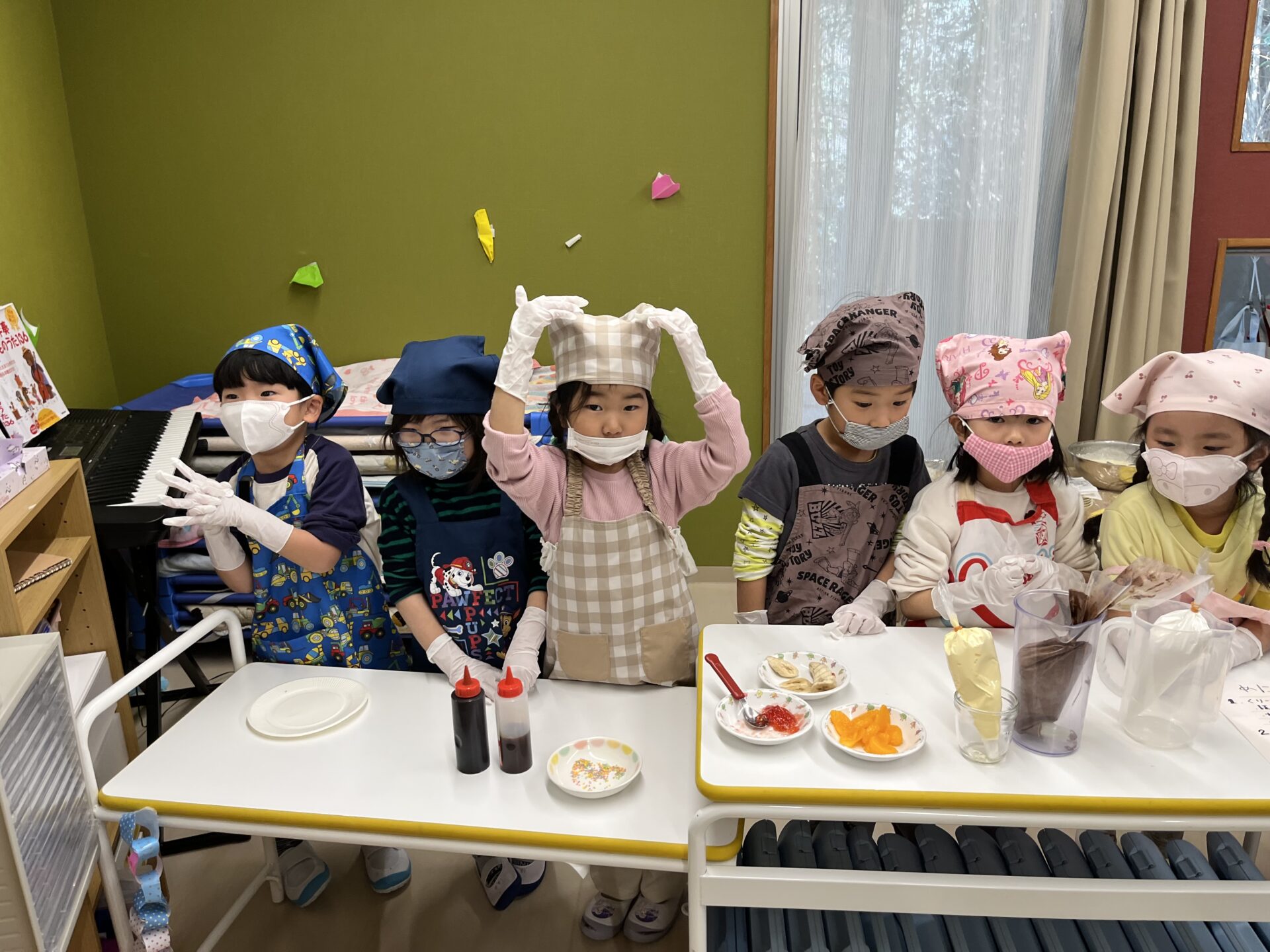 クッキングが大好きで、どんどんチャレンジしたいという前向きな上ノ丸くじら保育園の仲間たちです。