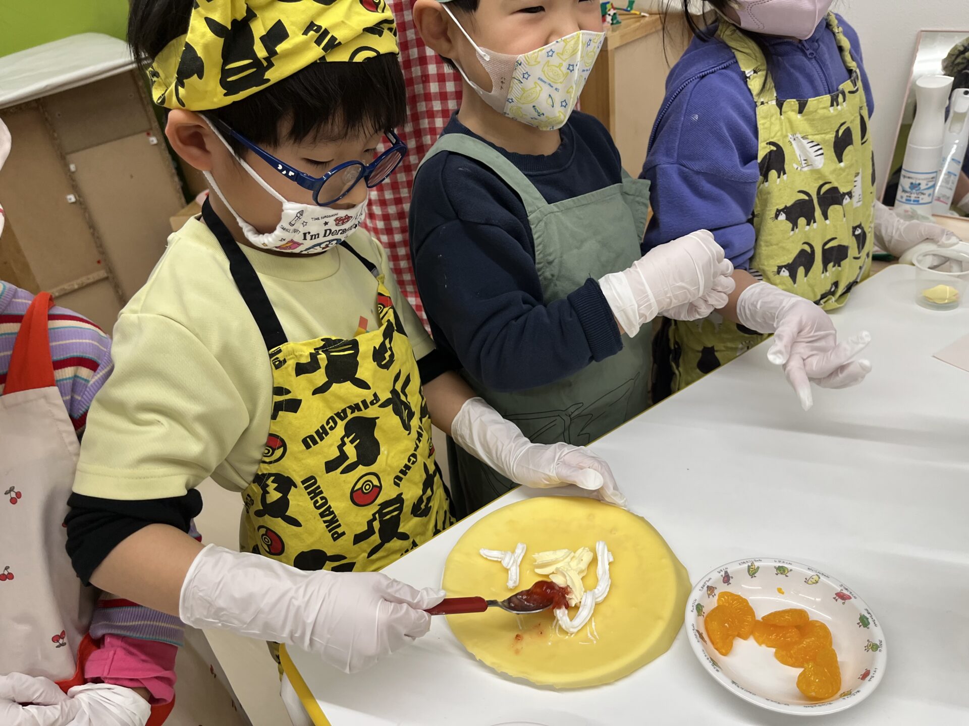 みんなすごく喜んでいて、クレープ屋さん大成功でした。お店で食べたものより自分たちが作ったものの方が美味しいと大満足でした!
