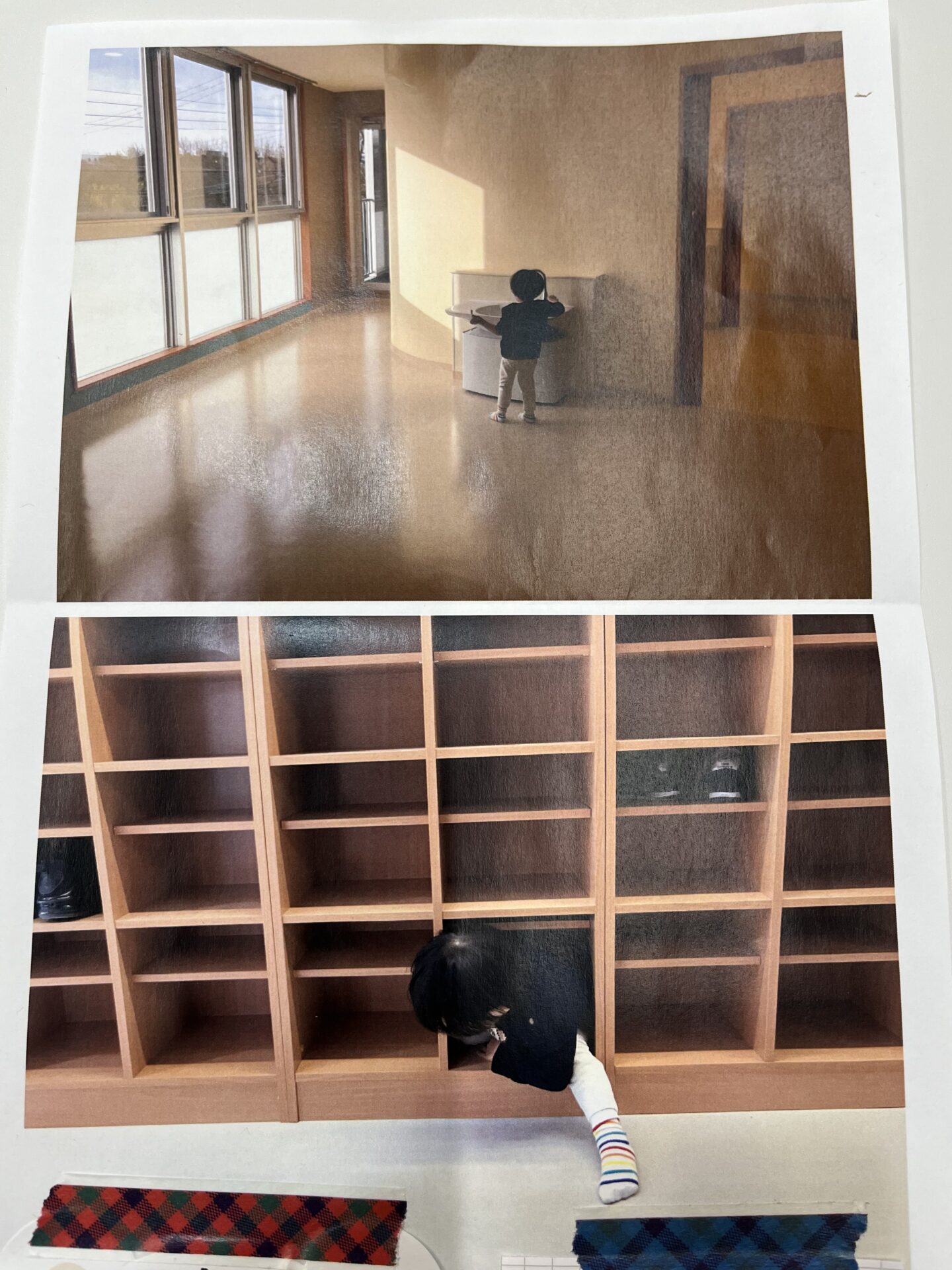 何もない保育室、きれいな靴箱に入ってみた様子。