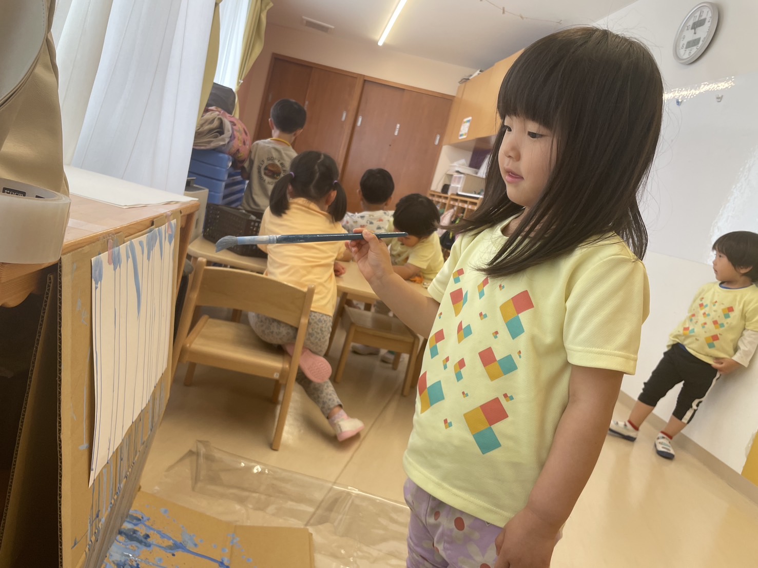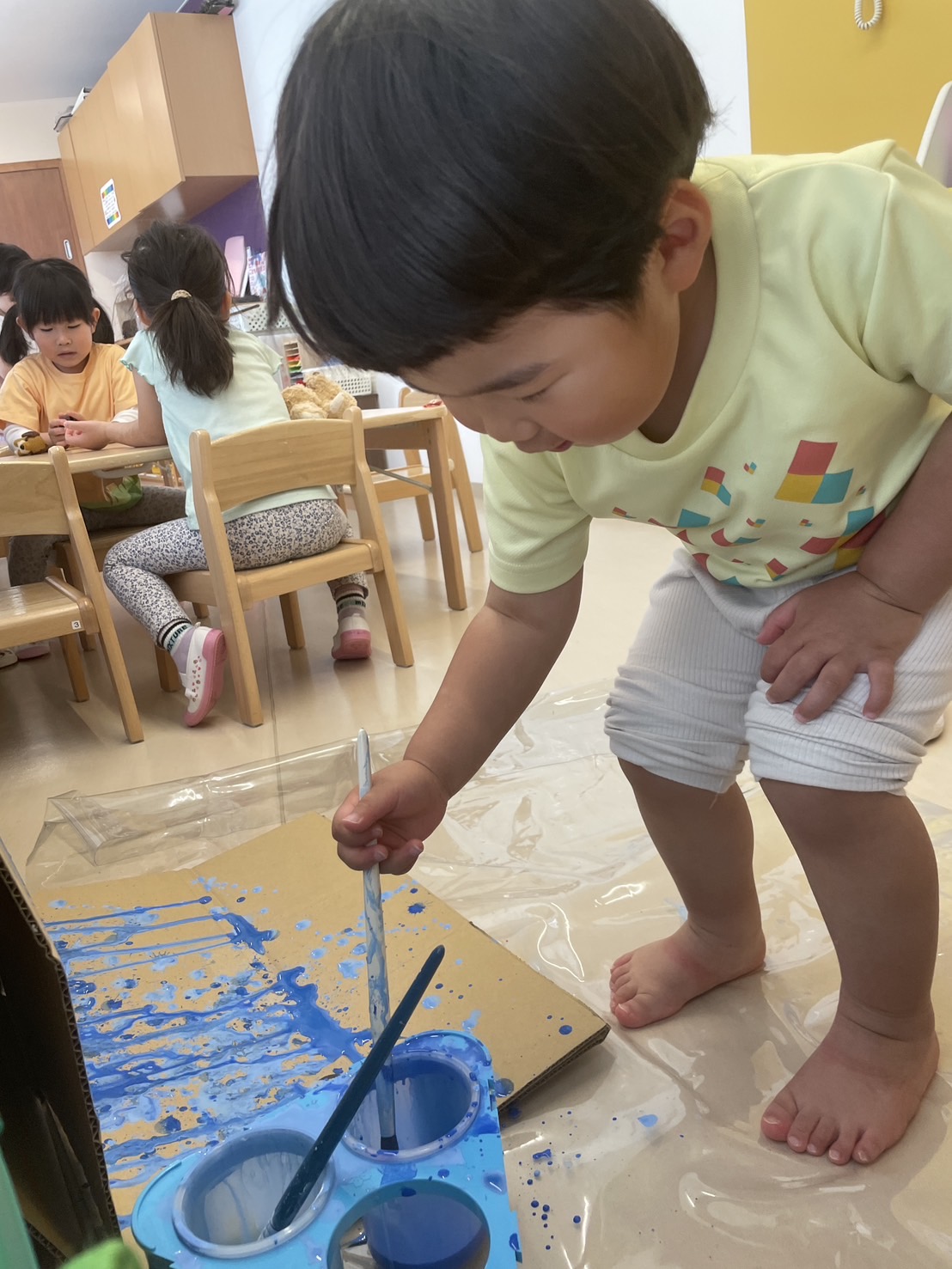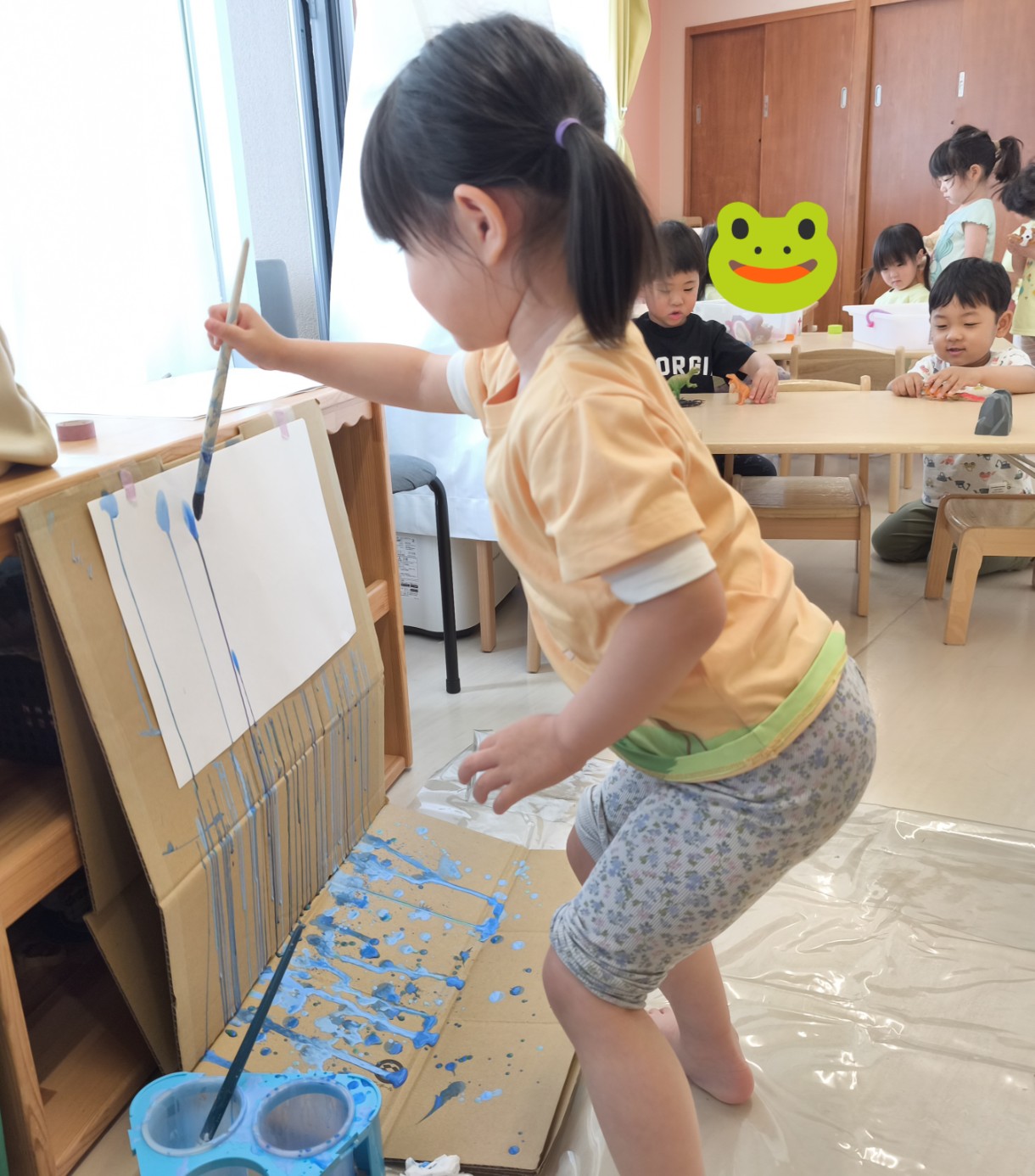 2025.05.21 クラスの様子 ブログ 【03】 雨。 3歳児クラスが楽しそうな活動をしていました♪ 壁に張った画用紙に絵の具を垂らすと、、、 本当の雨みたいですね! 雨の動画で音を聞いてみるなど、雨に興味も出てきているみたいです☔ 一覧へ戻る
