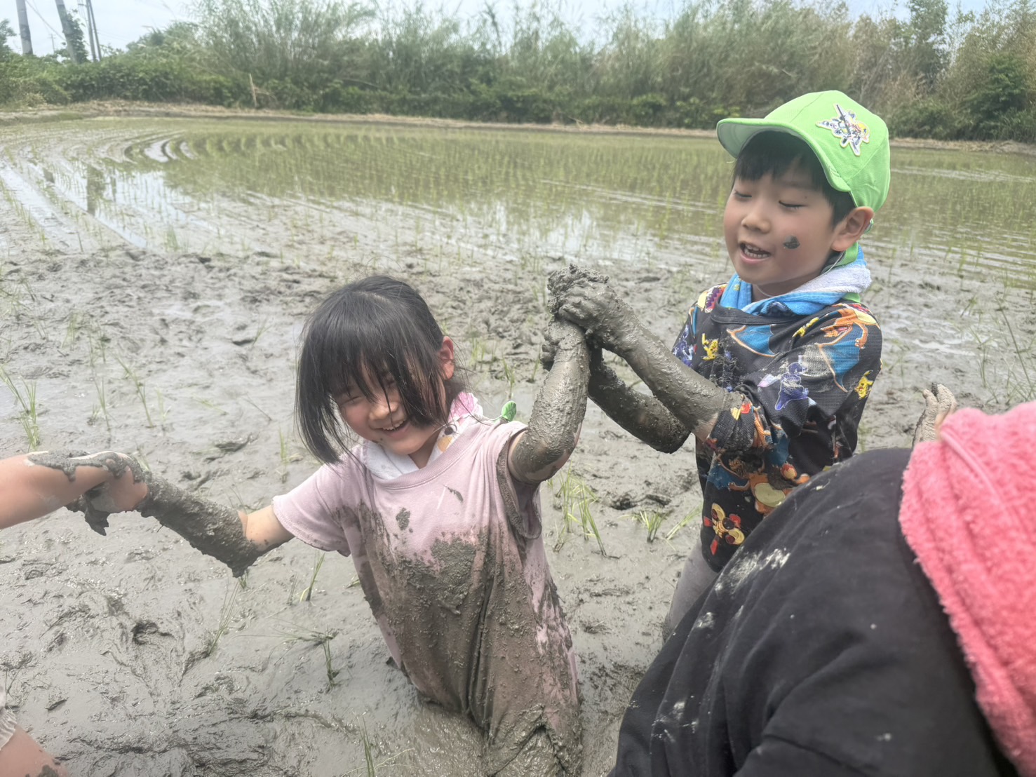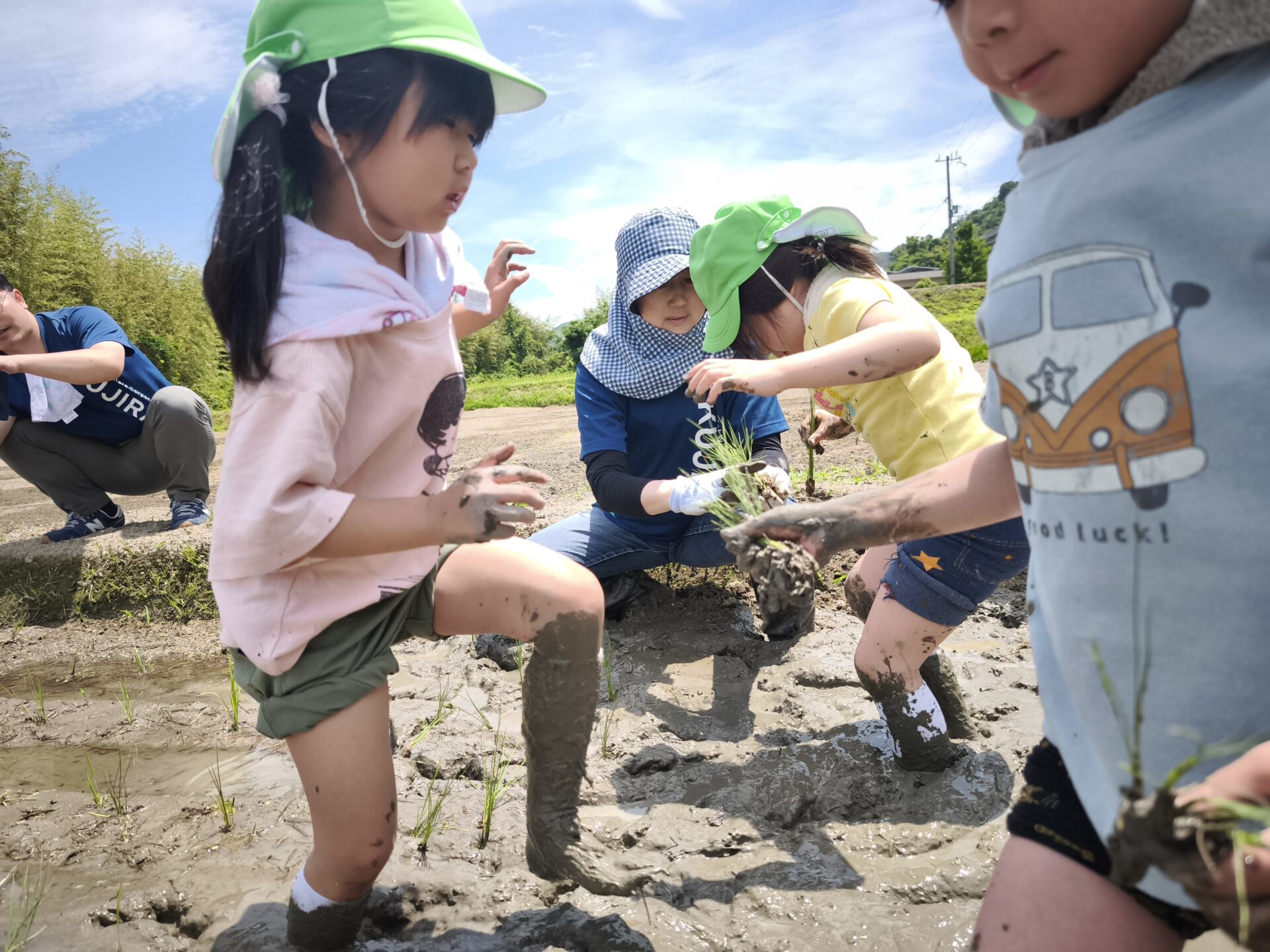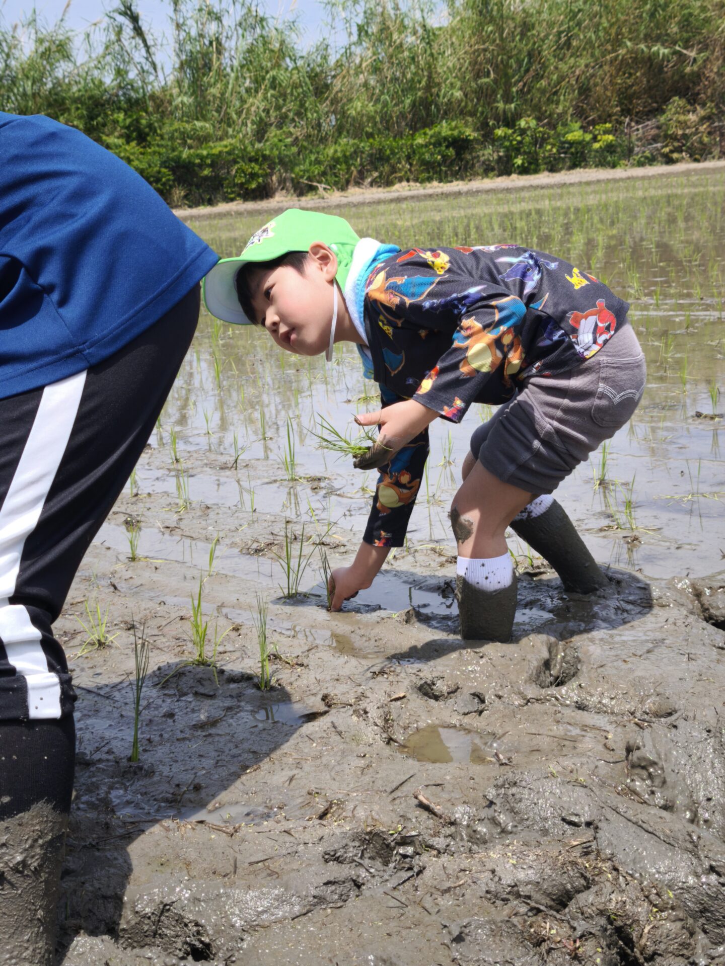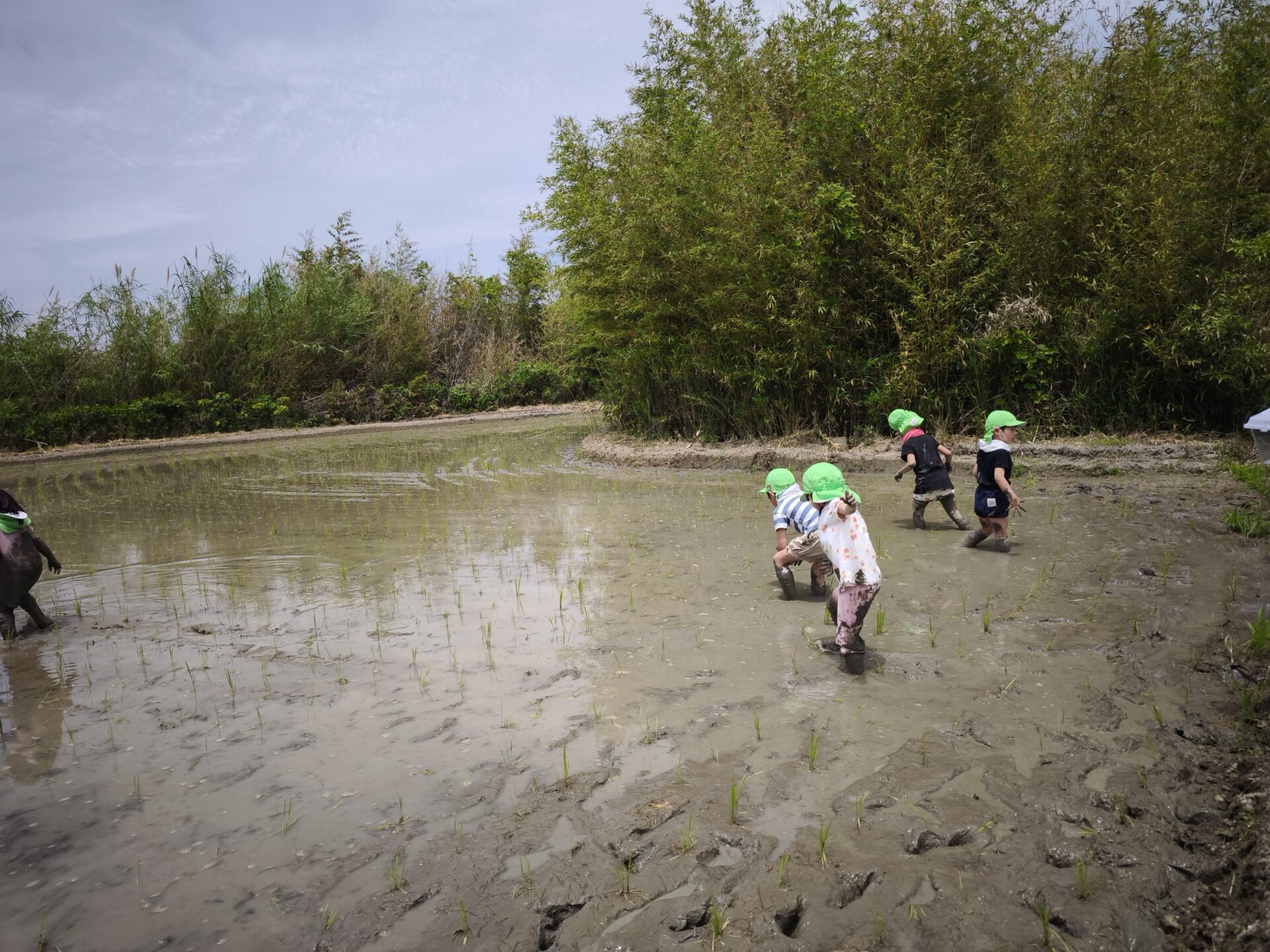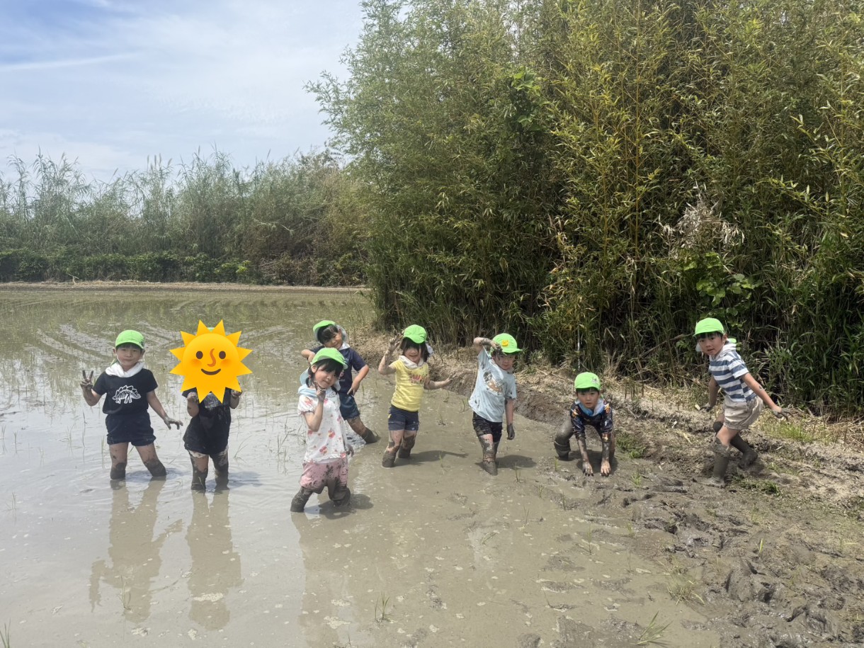 はじめは不思議な感触に慎重なお友だちもいましたが、すぐに慣れて田植えの仕方に興味津々で積極的にどんどん苗を植えていっていました!
